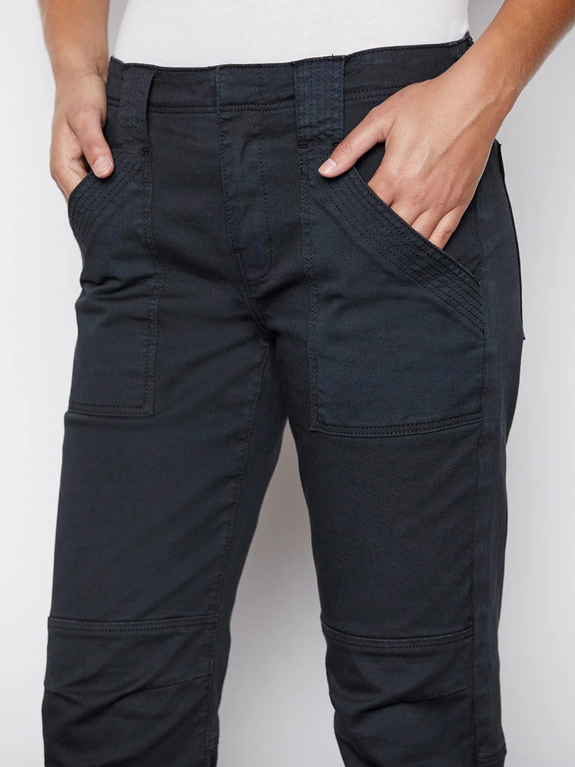 New ✨ Frame-denim Banded Bottom Trapunto Moto Pant — Washed Black ⭐
