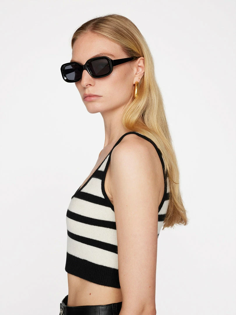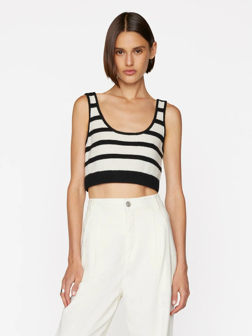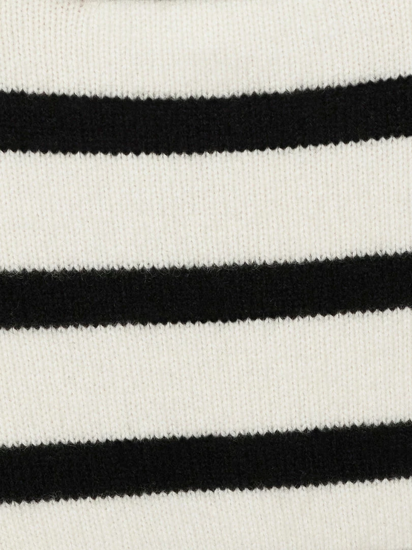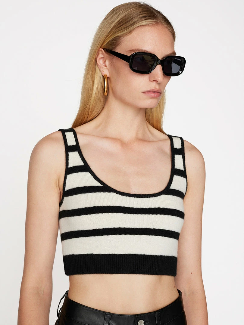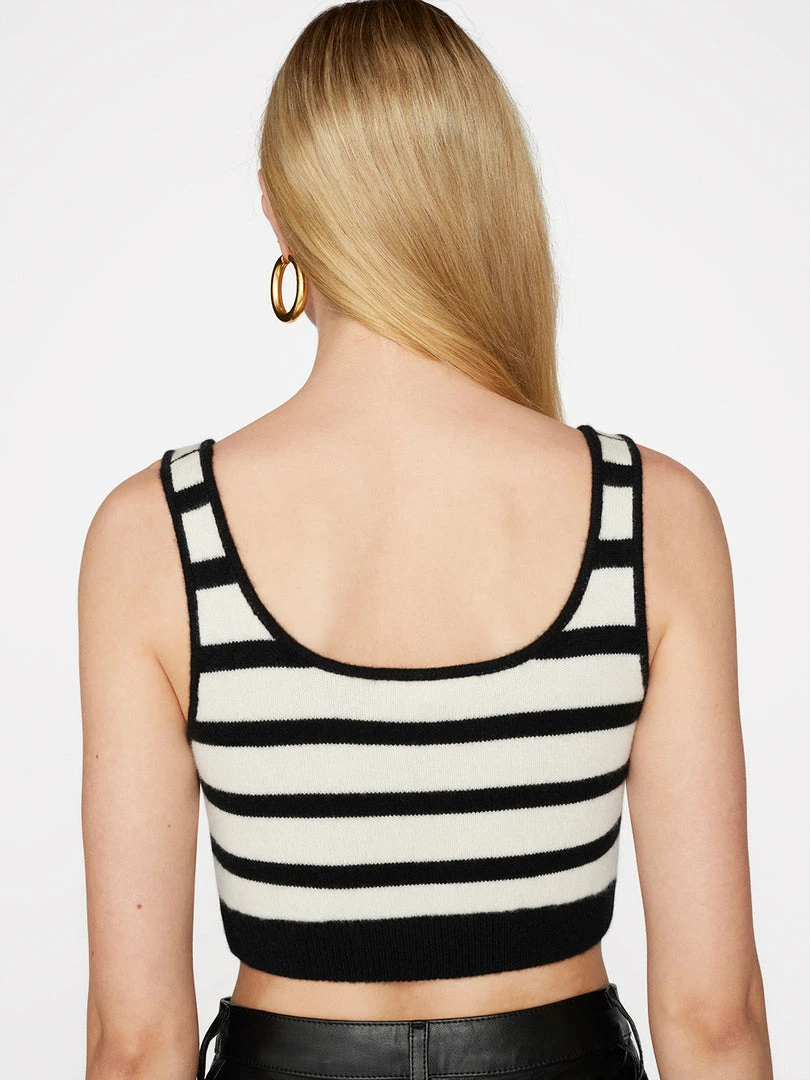 Classic white-and-black Breton stripes, reworked in an unexpected silhouette. Crafted from super-soft cashmere, this rib-grazing bralette balances wide-leg trousers and chunky loafers, but looks equally chic under an oversized blazer.
