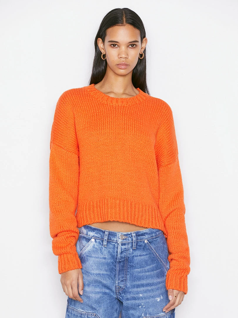 A cropped take on our bestselling Oversized Crew Sweater, this closet staple features a borrowed-from-the-boys fit and outsized cuffs, hems, and crewneck. For a striking monochromatic look, pair yours with denim in the color of the season, Orange Crush.