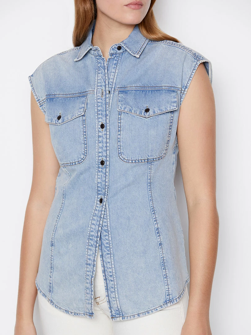 SKU: frame-denim-6855274299568 Categories: Clothing, Denim, Women Tags: _badge:25FF0322, _badge:cyberexcluded, _badge:MDW2022, Collection::sale tops, Filter-color::Light Wash, Filter-style::Denim, Filter-style::top, Fit:true