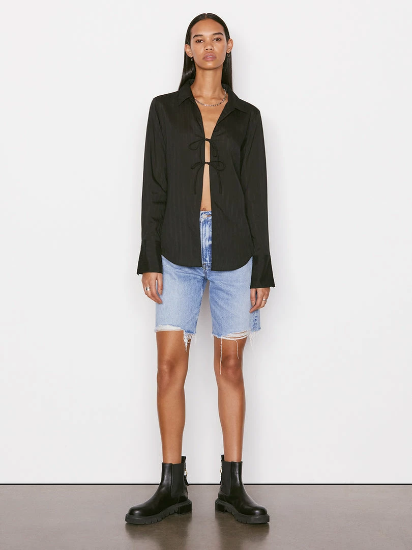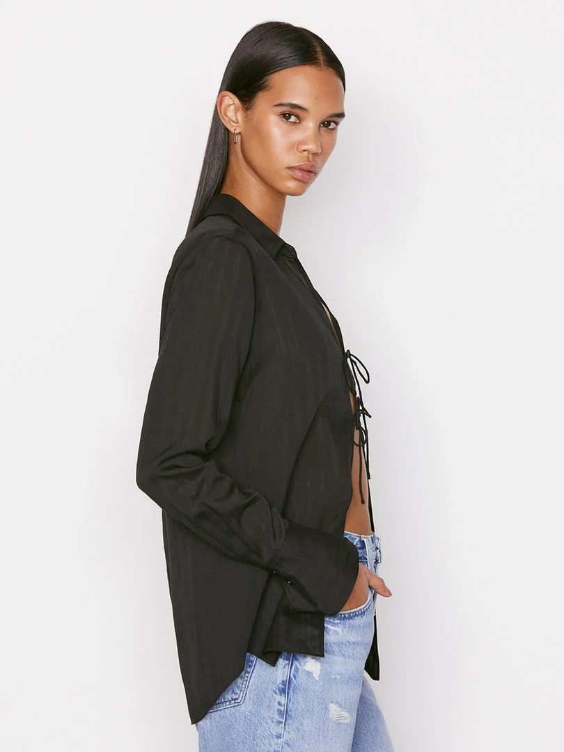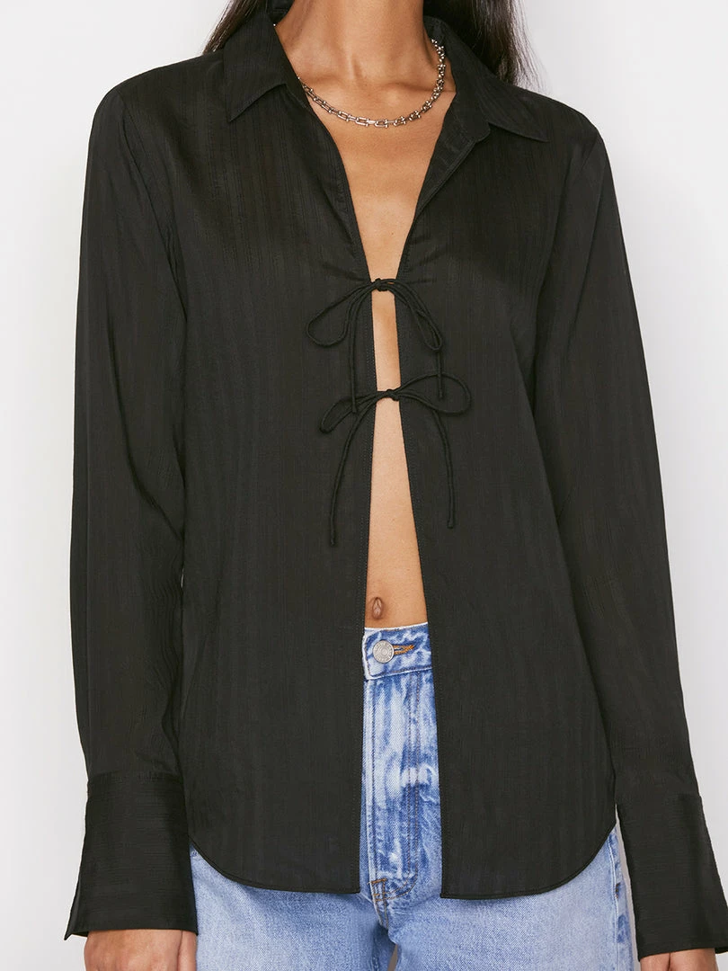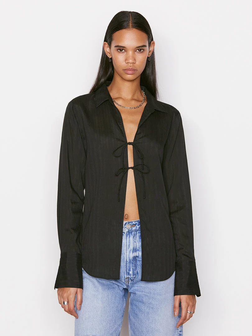 New ⭐ Frame-denim Delicate Tie Front Top — Noir ⌛