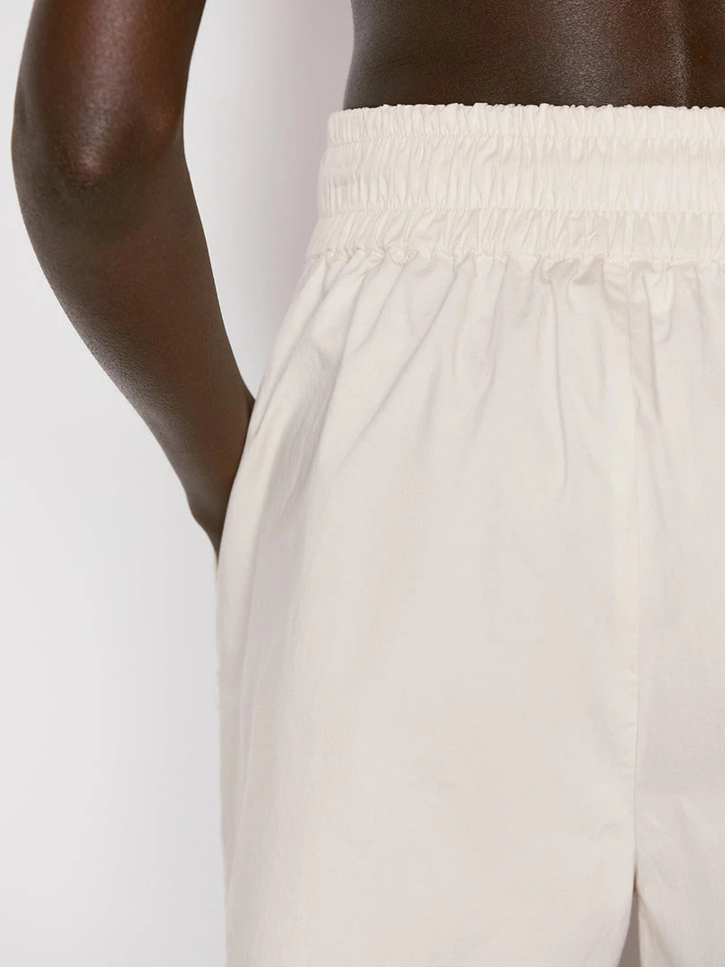 This lounge short features an adjustable elastic waistband that can be cinched to your likingβwear high-waisted or just above the hips. Crafted from cotton poplin with a soft, brushed texture, pair yours with the matching bra top and pop your essentials in the zip pockets for a perfect poolside look.