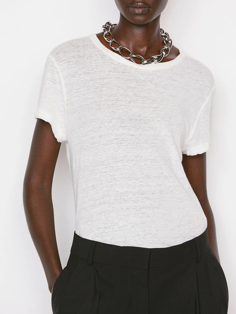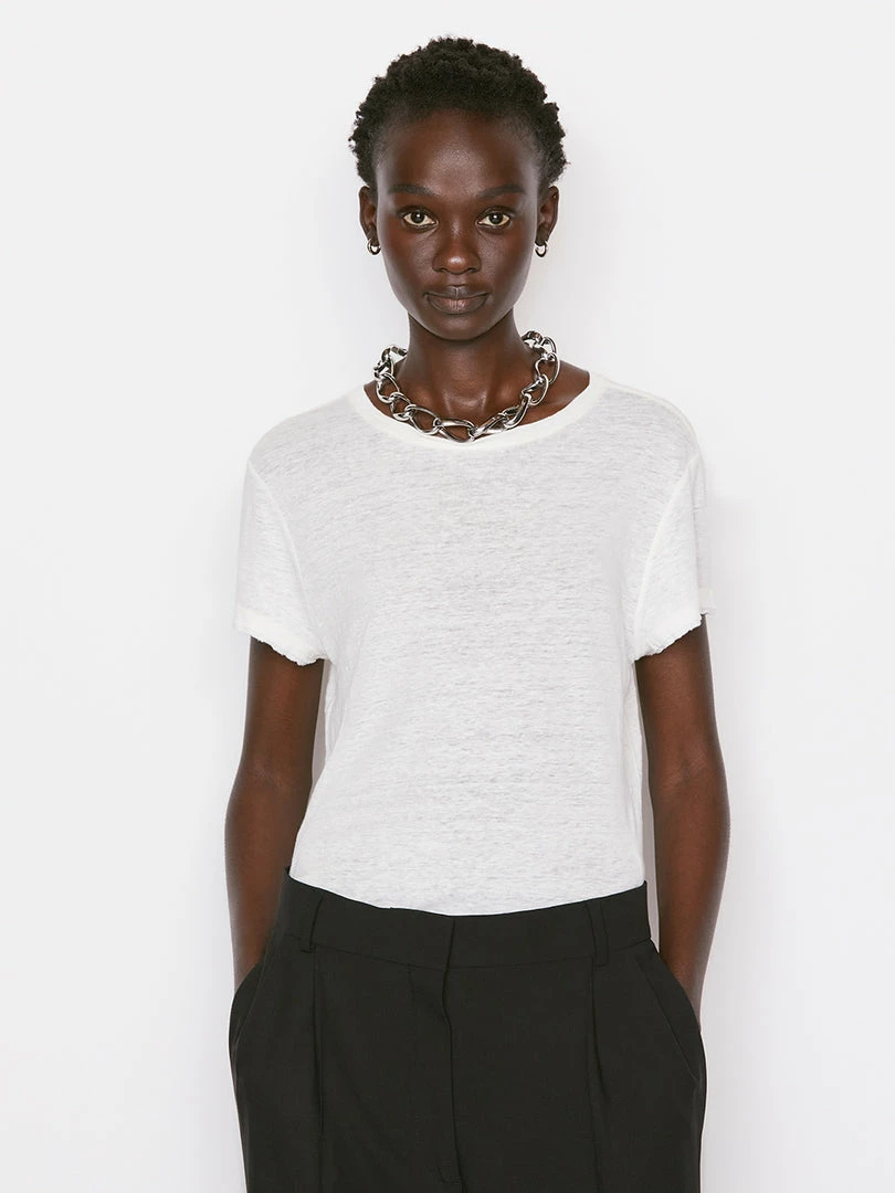 Crafted from light, breathable 100% organic linen for an elevated finish, this essential tee is slightly fitted through the body for the perfect fit. Even the short sleeves are cut to flatterβmaking this everyday tee a go-to for a laid-back yet pulled-together aesthetic.Β