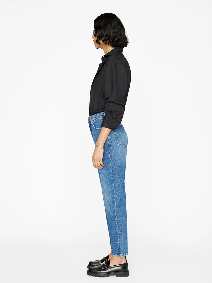 This love letter to โ90s denim features a high-rise that nips in to accentuate the waist and give your backside a dreamy curved silhouette. On-trend, incredibly flattering, and destined for favorite-jean status, this tapered-leg fit is crafted from medium-blue rigid denim that breaks in beautifully.