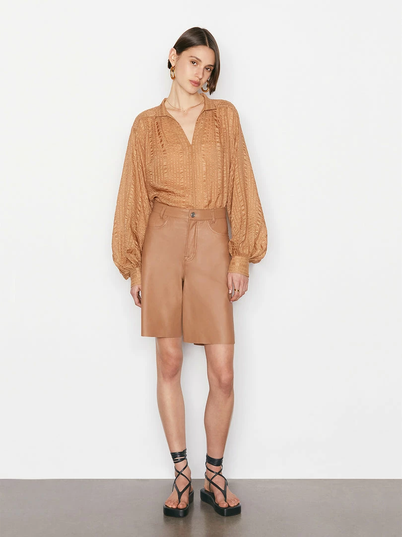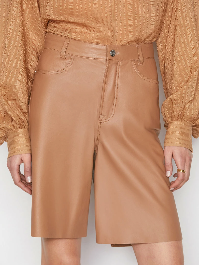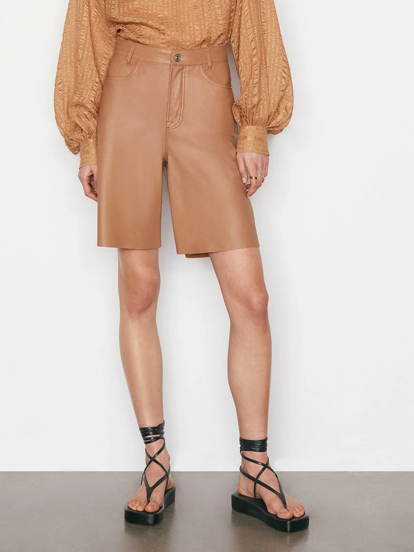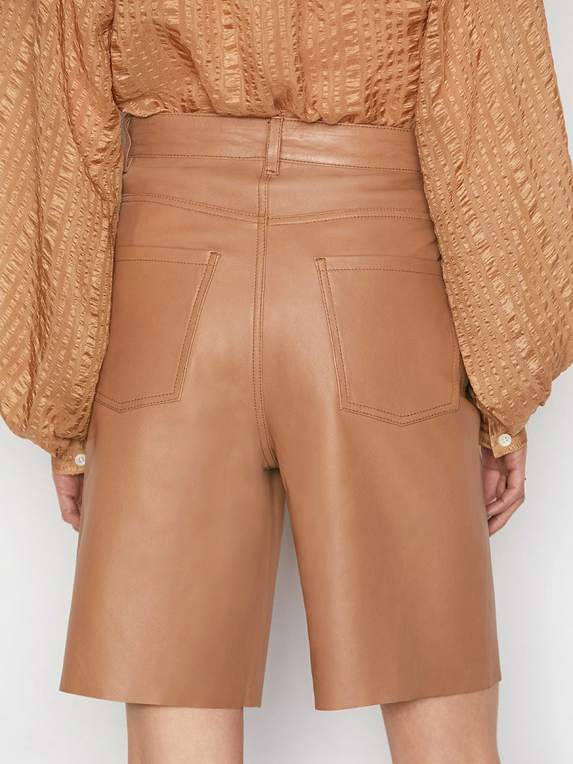 Flash Sale π Frame-denim High Rise Leather Bermuda — Latte β¨