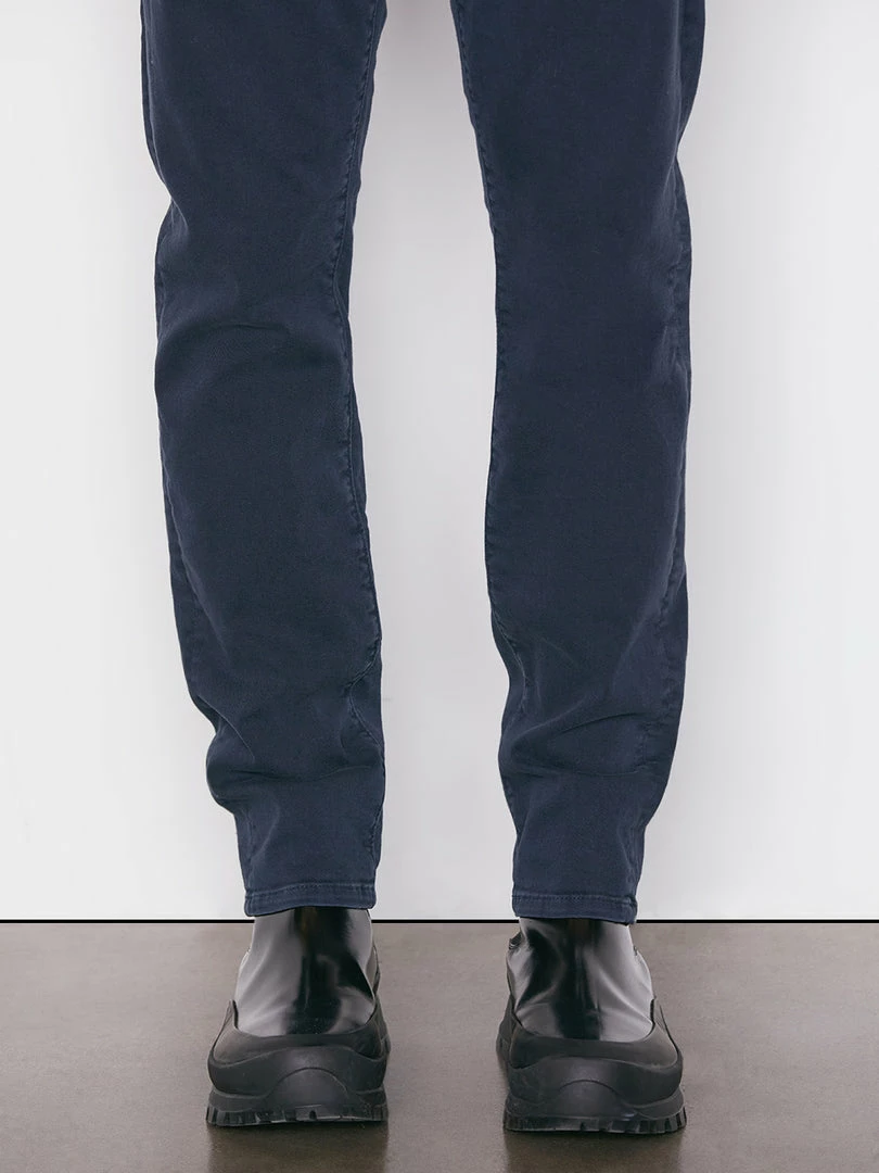 Our signature slim-fit, mid-rise silhouette done in super-stretch lightweight twill for a comfortable fit that adds variety to your wardrobe. In Garage Navy, these 5-Pocket pants look and feel similar to denim and feature grinding at the pockets and seams for a lived-in look.