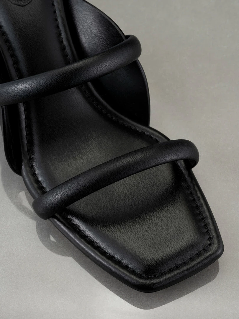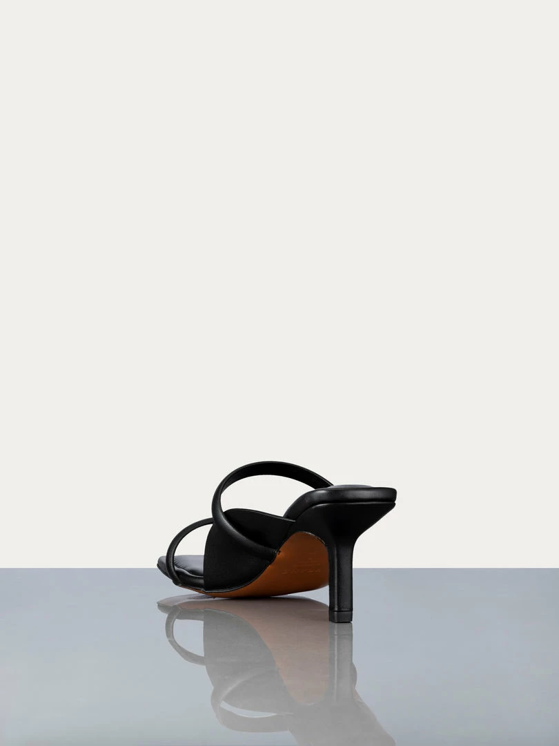 A minimal heel with double straps and semi-circle details at the inner and outer midsole, this silhouette is a timeless play on the puff-detail trend that lends itself to occasion dressing, date night, and daily outfitting.