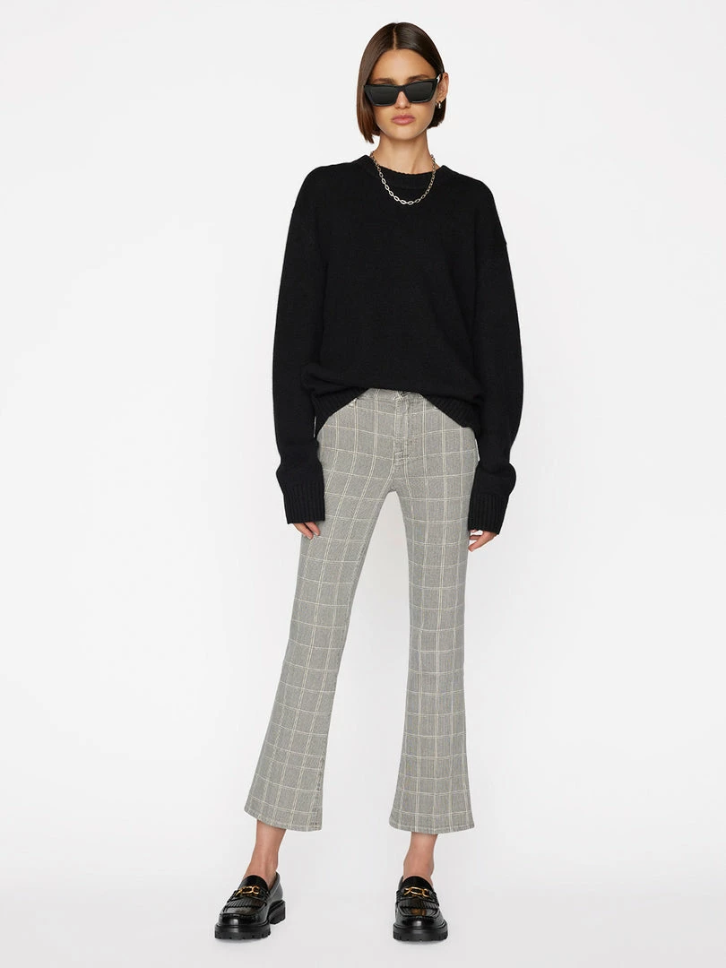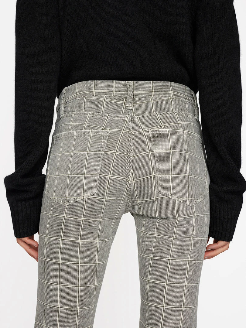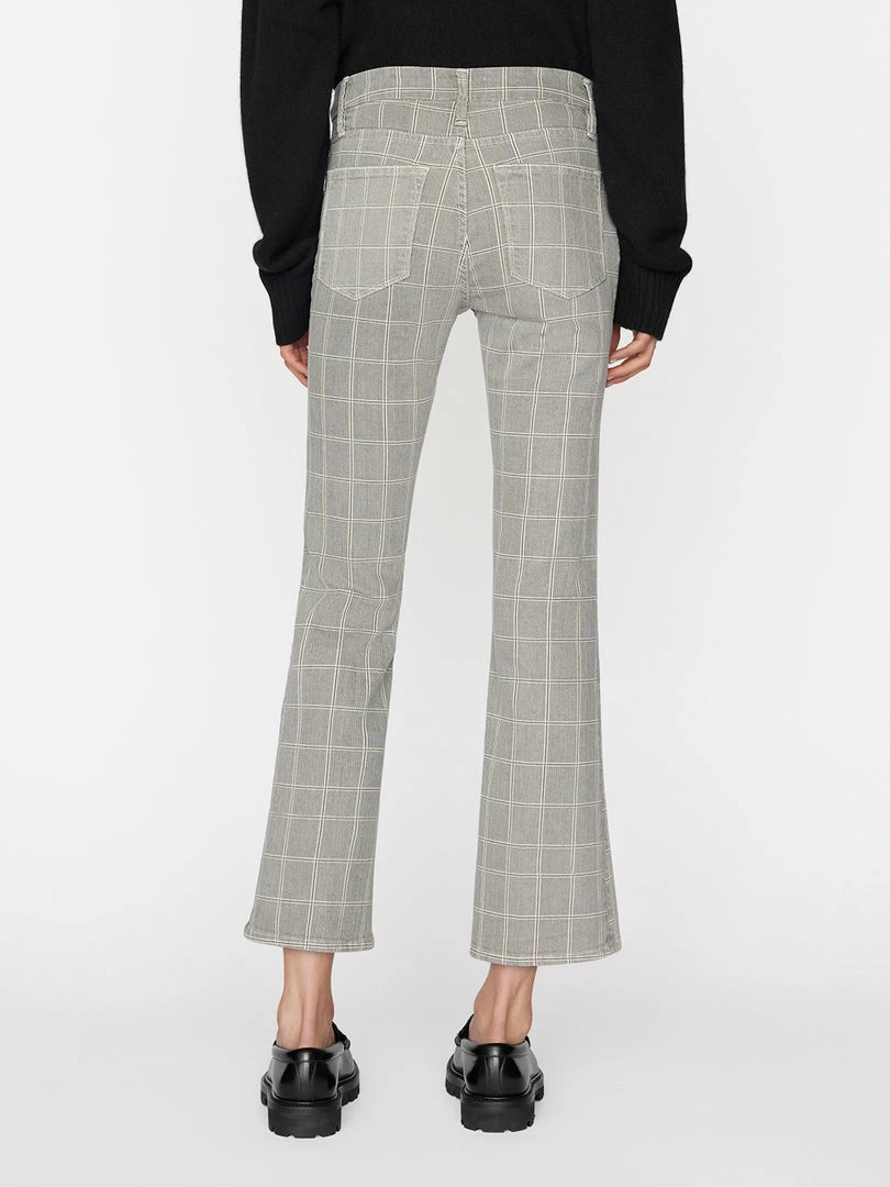 The fit that started the cropped boot trend. Done in tonal gray windowpane plaid, this super stretch denim contours your curves and won’t bag out with wear. With a mid-rise waist and flattering crop, this colorway pairs perfectly with black cashmere and white tees.