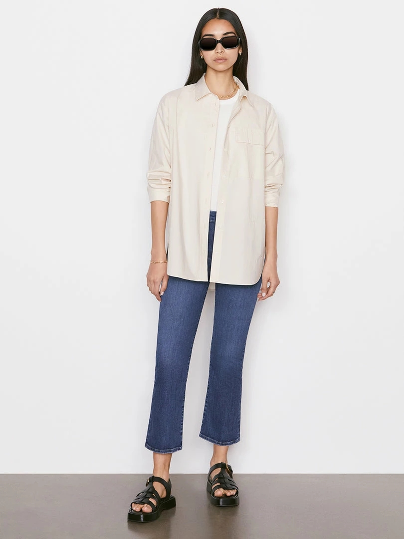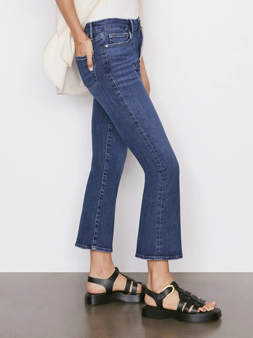 Our bestselling cropped boot-cut silhouette, designed with a comfortable contour waistband thatβs form-fitting at the top and tapers out from the knee. In a clean and bright medium-blue wash, this is your go-to denim for everyday.