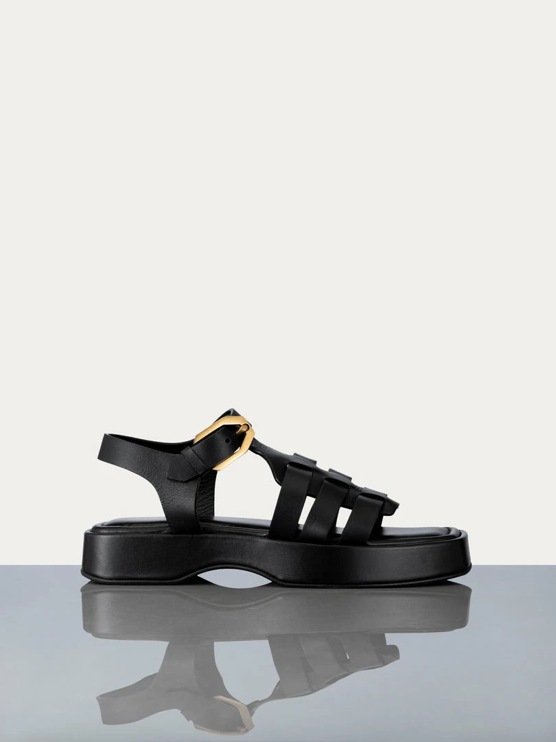 This open-toe fisherman sandal is a style-forward swap for your everyday slides. In inky-black Noir leather that breaks in beautifully, this pair features a platform sole and gold buckle clasp.