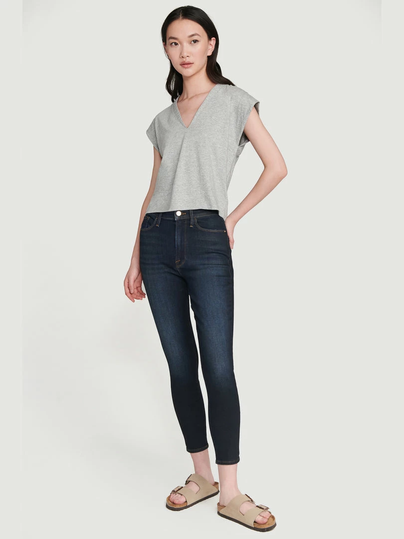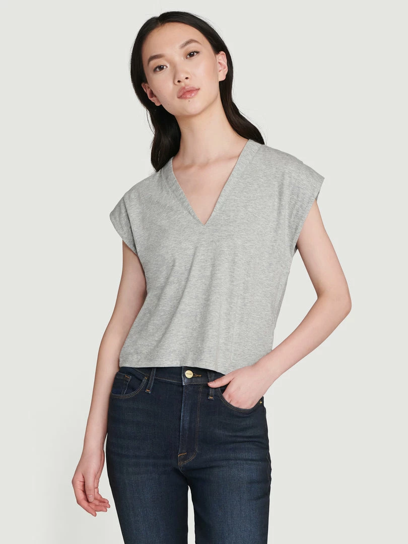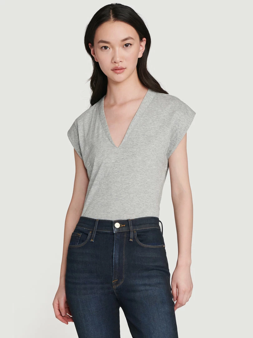 Best Pirce π€© Frame-denim Le High Rise V Neck Tee — Gris Heather π
