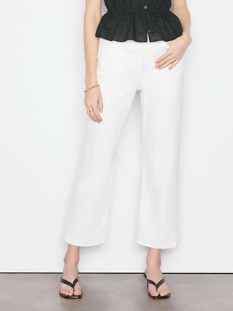 Our beloved Le Jane fit, in a flattering, on-trend crop length. This ultra-high-rise jean is fitted through the hips, slightly relaxed at the thighs, and straight through the legs for a nostalgic look. Worn-in grinding and knicking give this clean jean lived-in character.