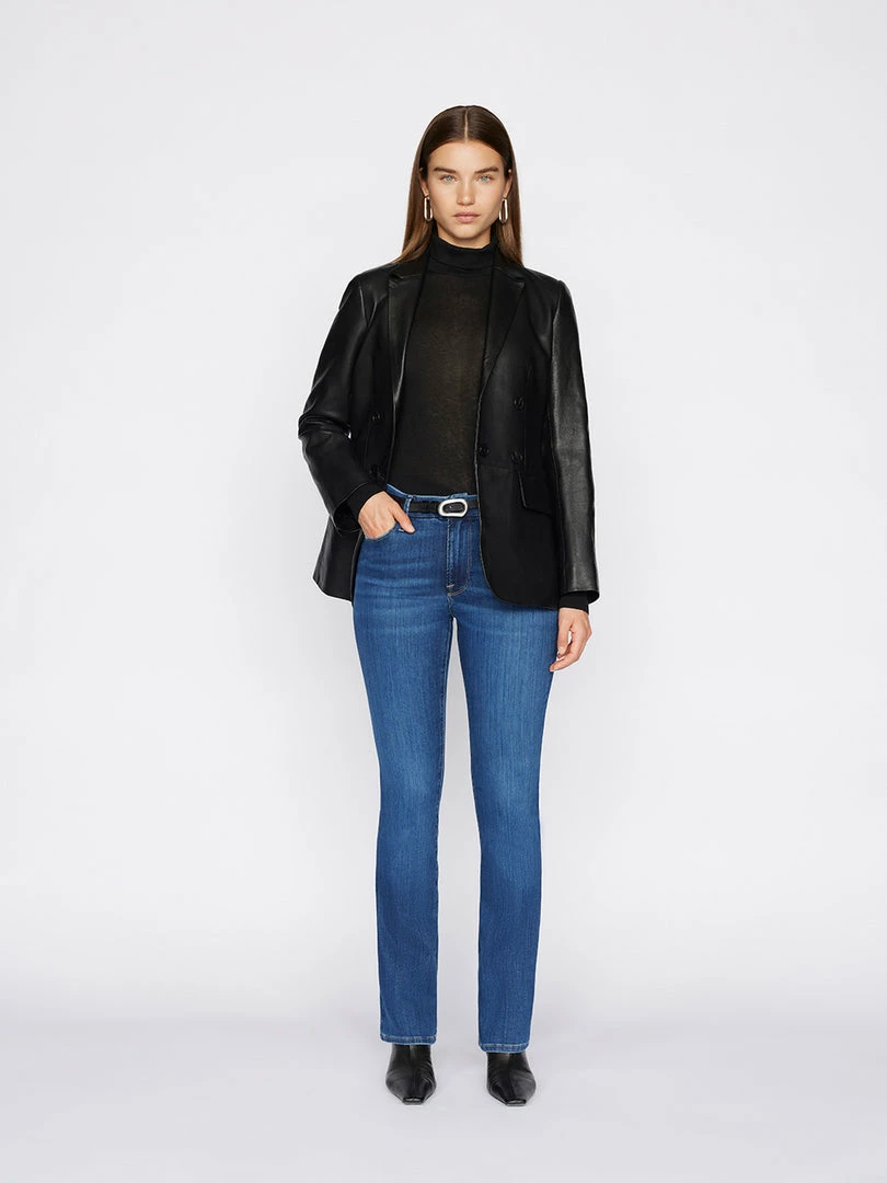 Our mid-rise, boot-cut fit features a contour waistband for comfort and a close fit through the seat and thighs. Le Mini Boot’s perfect kick flare starts at the knee and finishes with a clean full-length hem. Cut from premium stretch denim in a dark indigo wash.