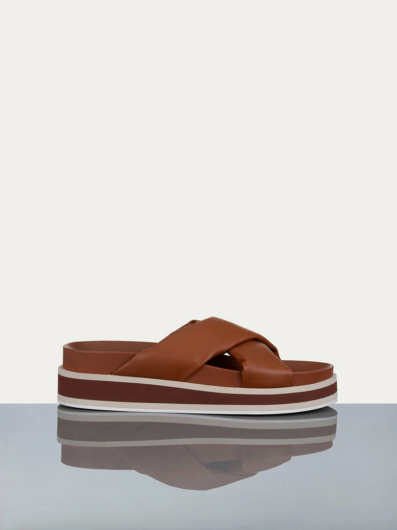 Featuring a Tobacco-and-white stacked platform sole that elevates laid-back looks and adds height without sacrificing comfort, these buttery leather slides work with breezy linen dresses and wide-leg denim alike. Pack this versatile pair for warm weather getaways, and style with cutoff shorts and tees for a nod-to-the-90s lift all summer long.
