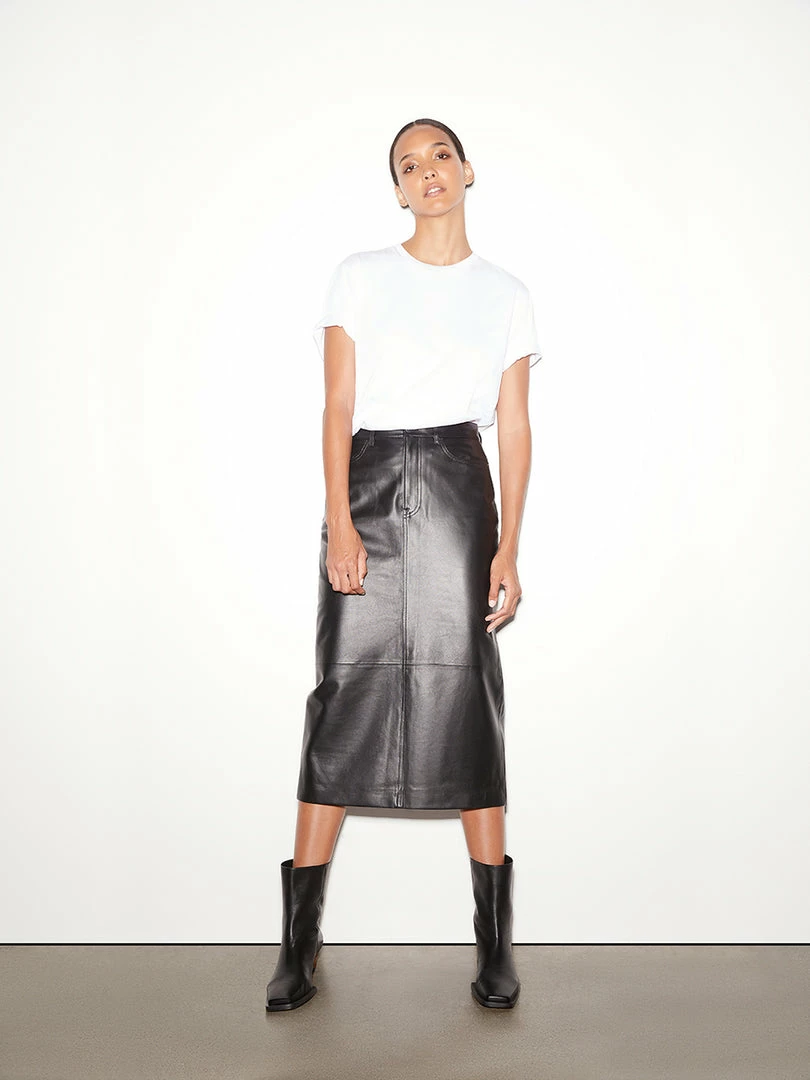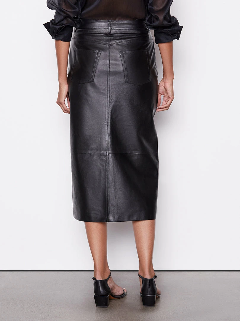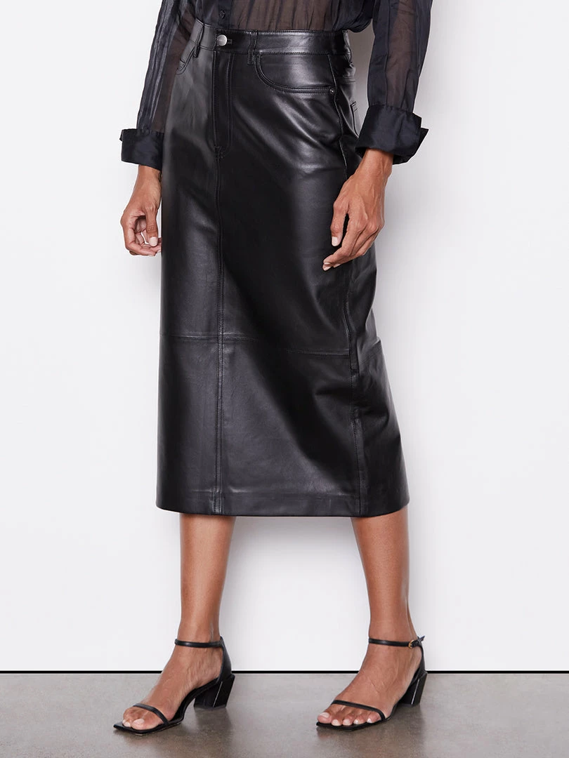 Budget ⭐ Frame-denim Leather Midi 👗 Skirt — Noir 😀