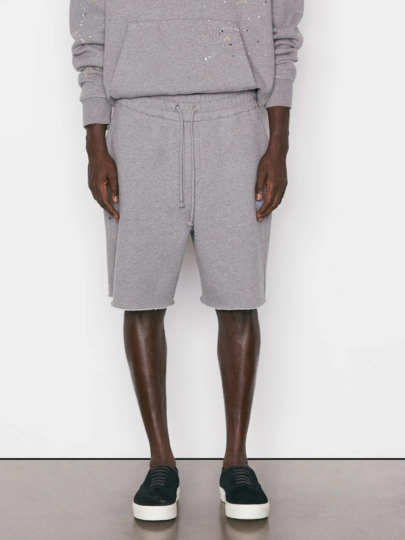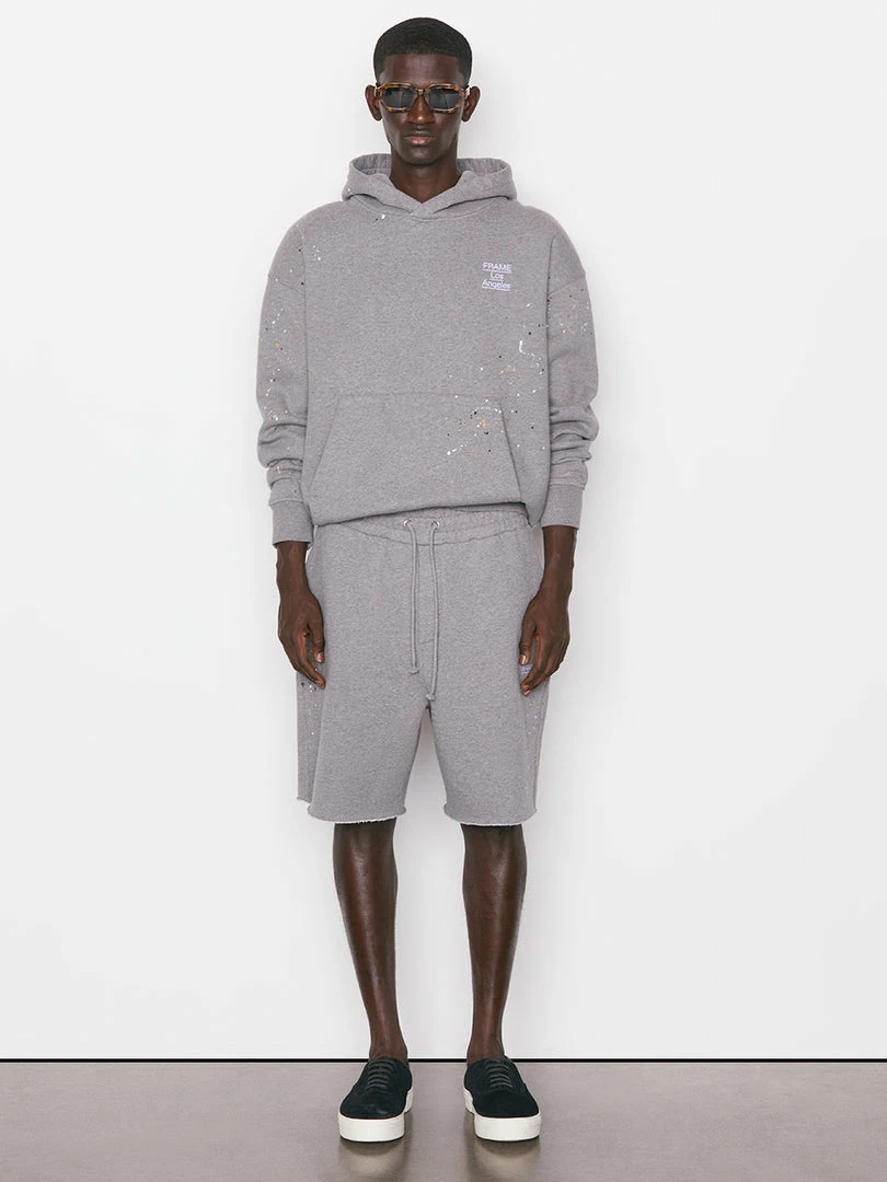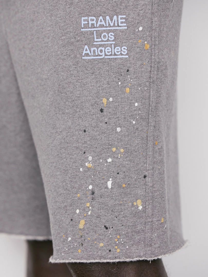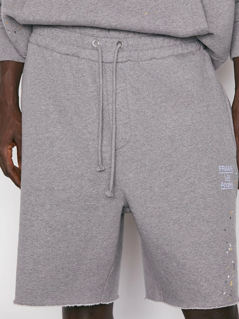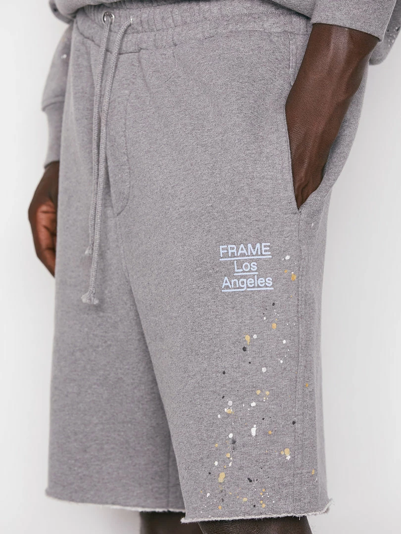 Give your sweats a new-season refresh. Our coveted sweatshort in classic grey melange features a colorful and unexpected splatter-paint effectโartisanally done in pop colors to match the FRAME logo printed at the thigh.