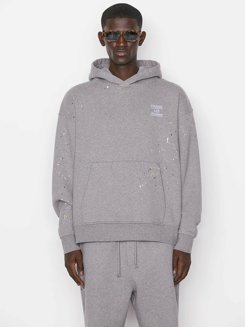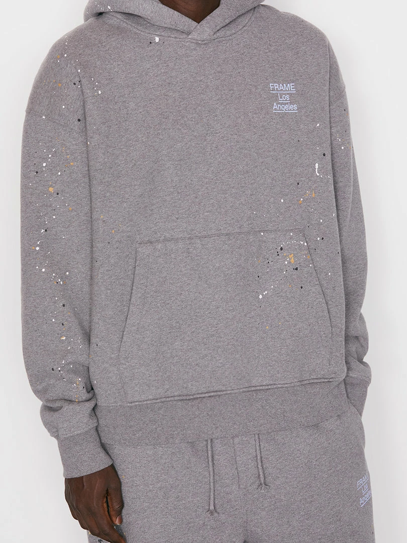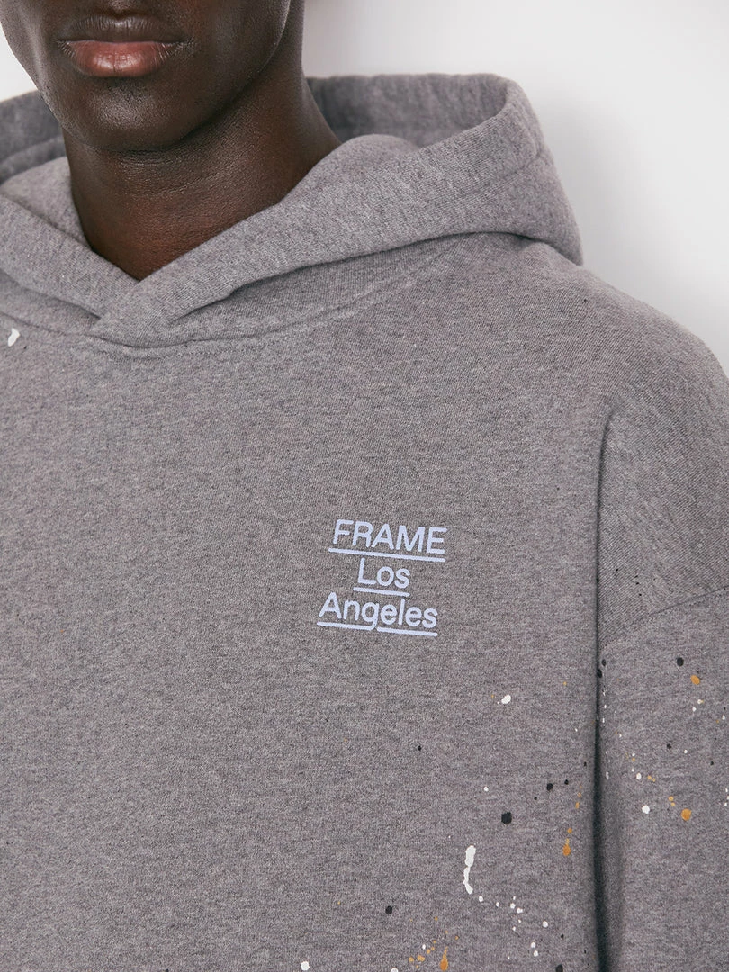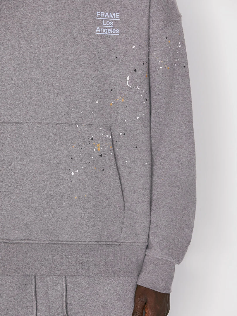 Give your sweats a new-season refresh. Our coveted hoodie in classic grey melange features a colorful and unexpected splatter-paint effect—artisanally done in pop colors to match the FRAME logo printed at the chest.