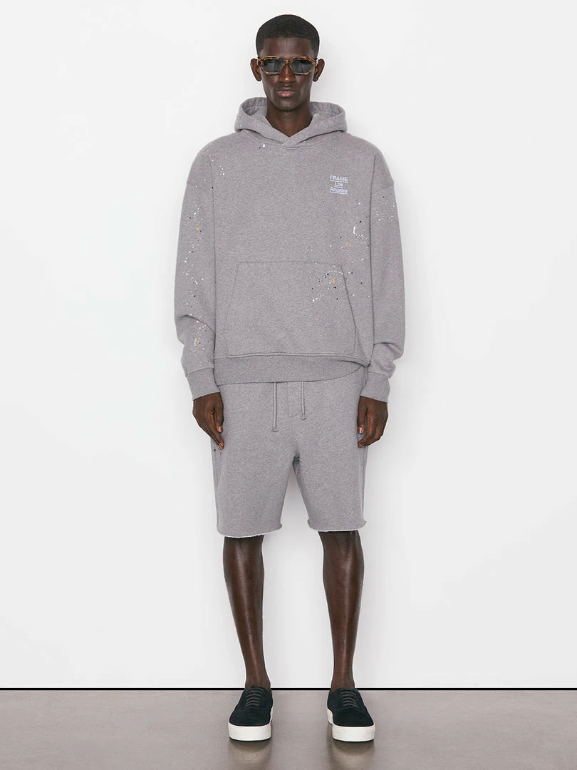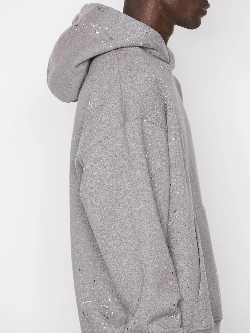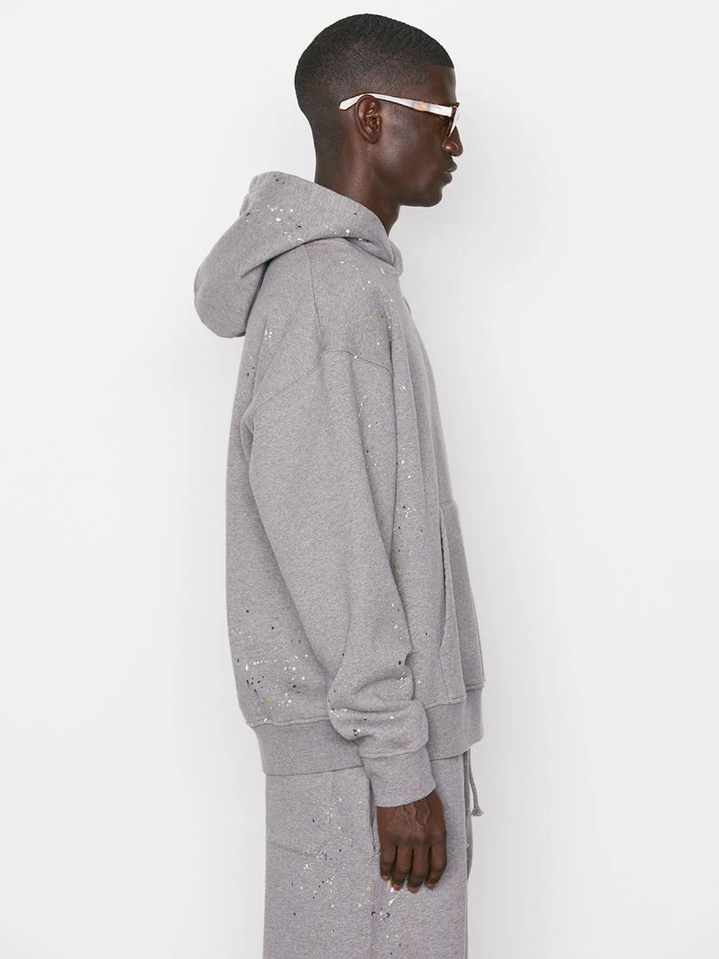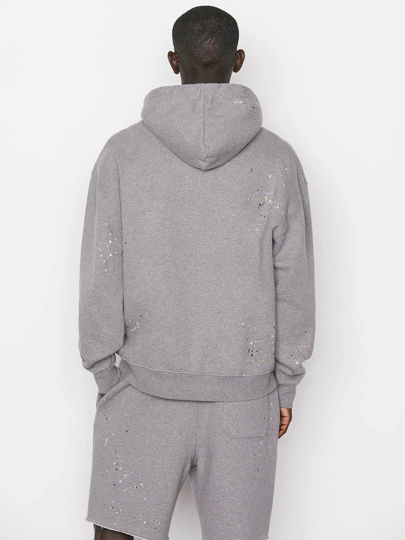 Give your sweats a new-season refresh. Our coveted hoodie in classic grey melange features a colorful and unexpected splatter-paint effect—artisanally done in pop colors to match the FRAME logo printed at the chest.