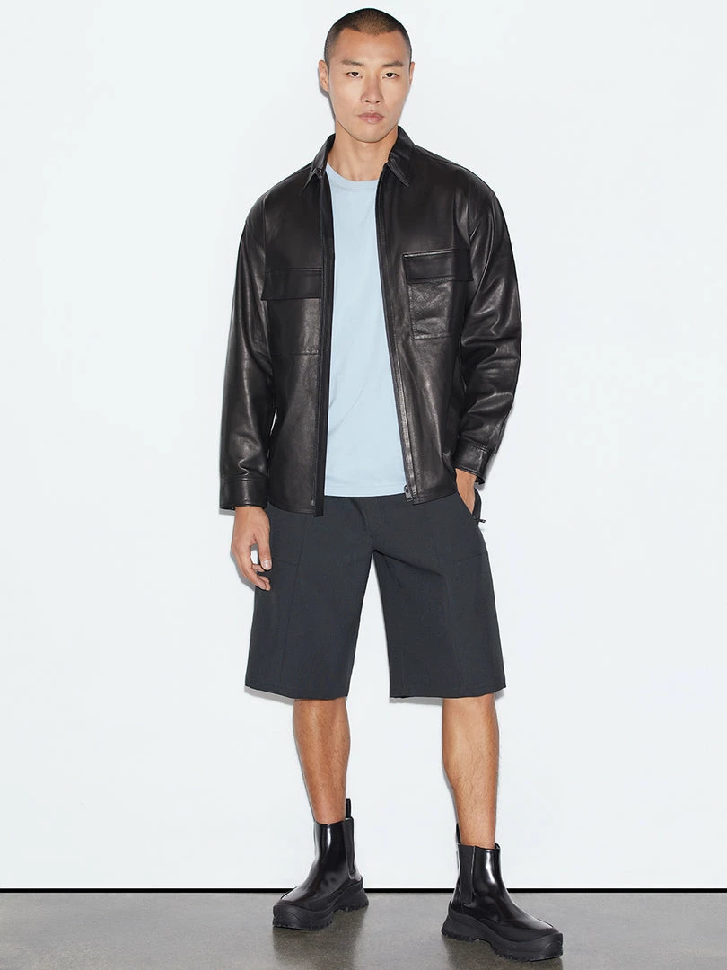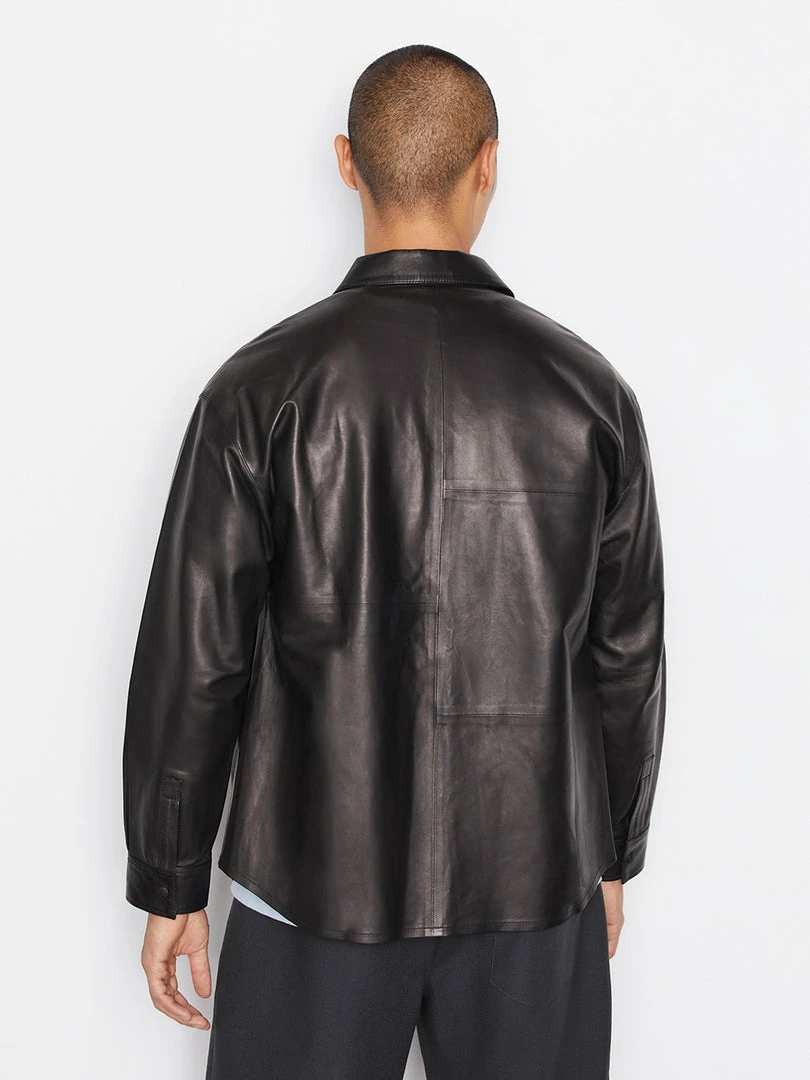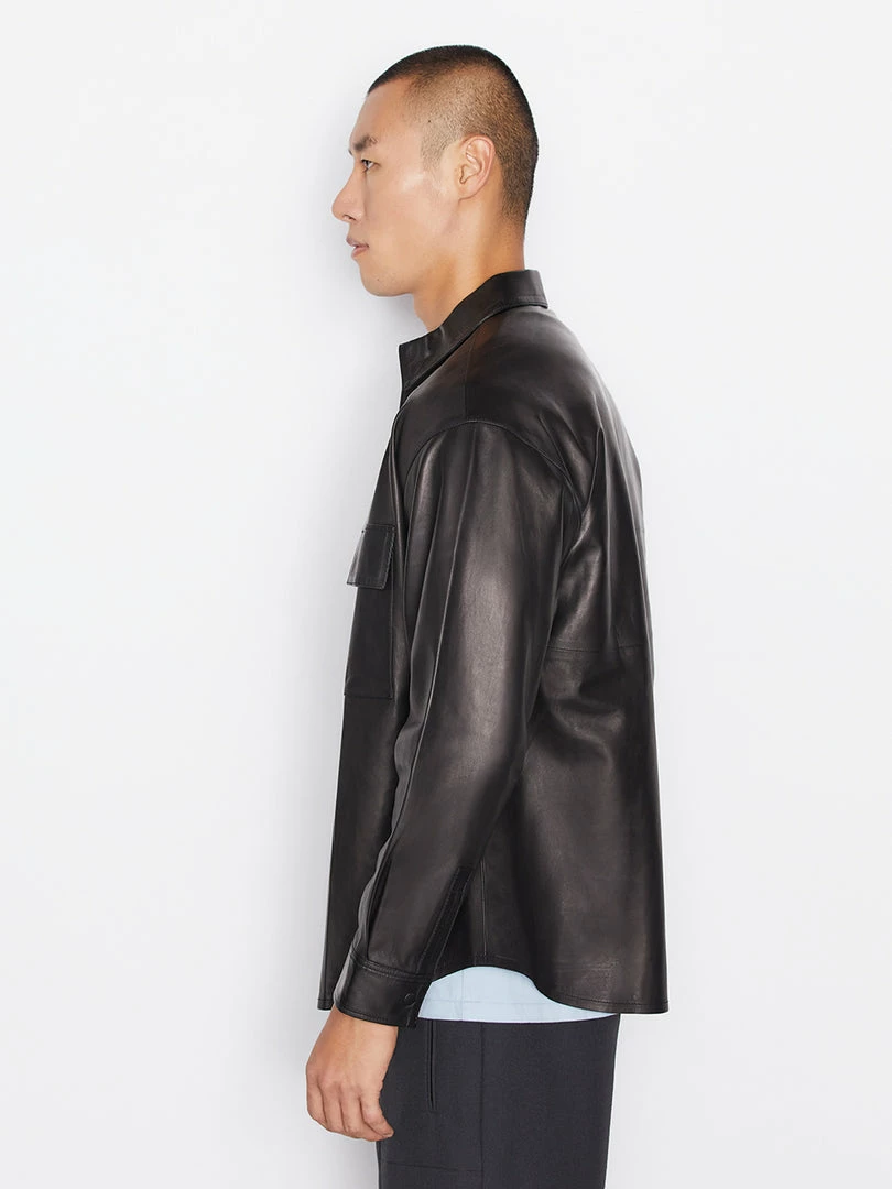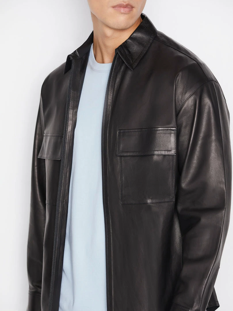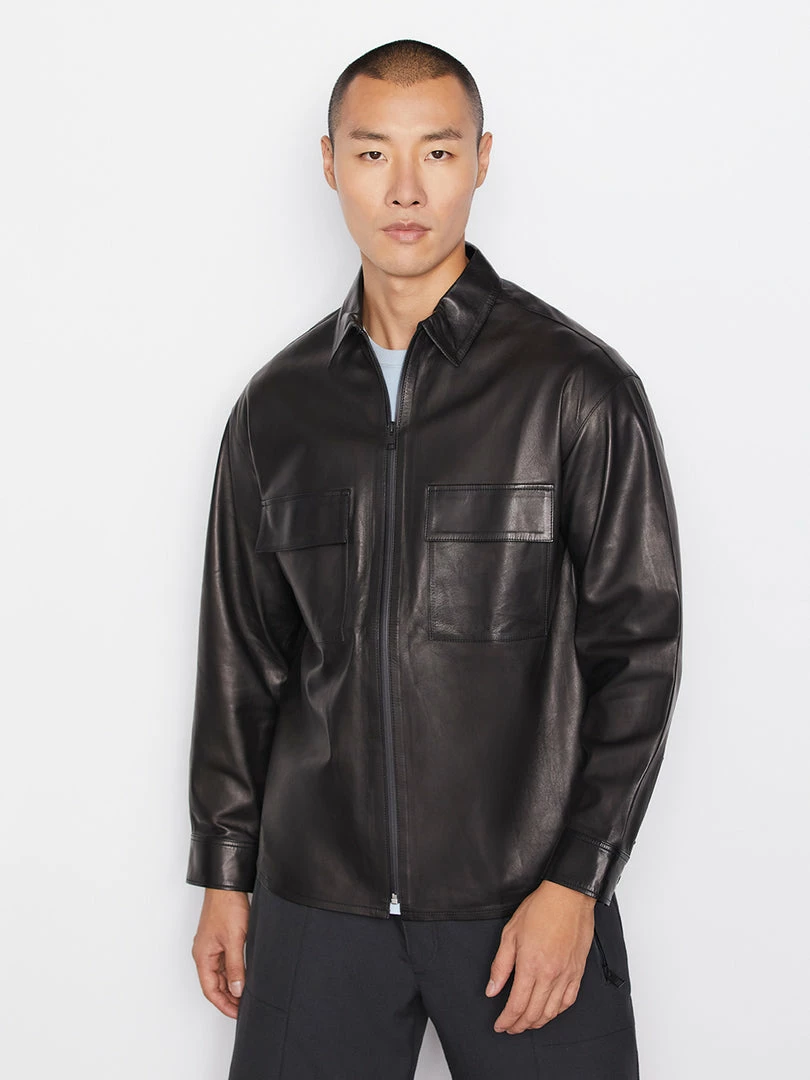 Brand new ❤️ Frame-denim Men Modern Leather Long Sleeve Zip 👚 Shirt — Noir 😀