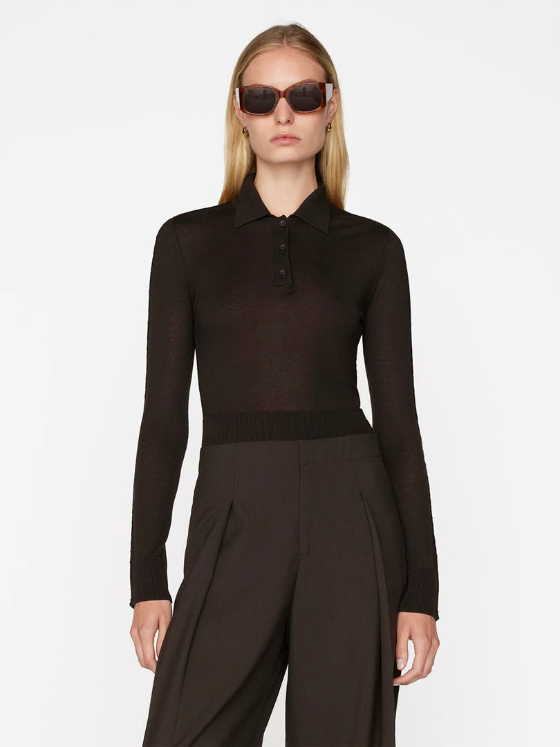 Discount 👏 Frame-denim Refined Polo Sweater — Americano 👩 Women 🎉