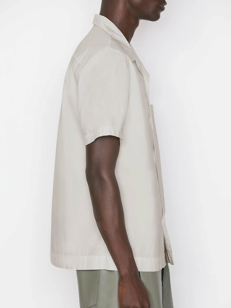 This modern warm-weather essential fits easily into any aesthetic, and pairs well with shorts and swimwear in the summer and under blazers and denim jackets in cooler months. In 100% cotton poplin, this shirt is crisp, breathable, cool, and relaxed.