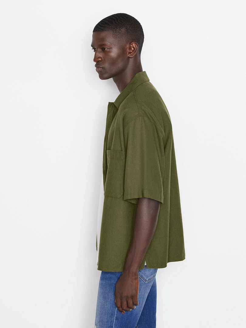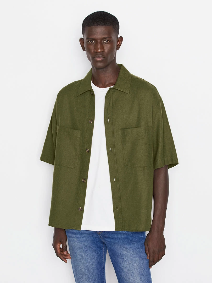 A foundational piece for dressing well, this shirt features a boxy fit and short sleeves that hit at the elbow. With double chest pockets and button-down styling, this woven shirt is cut from textured woven fabric in Rifle Green, and slightly oversized for a modern fit.