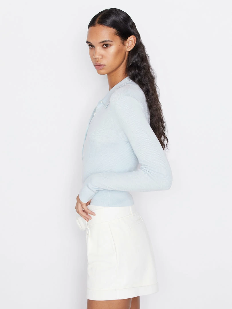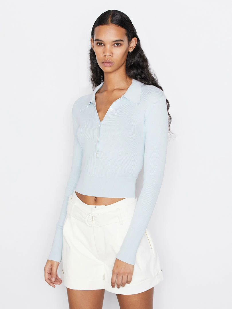 Wholesale ⌛ Frame-denim Shrunken Polo Sweater — Cloud Blue ❤️