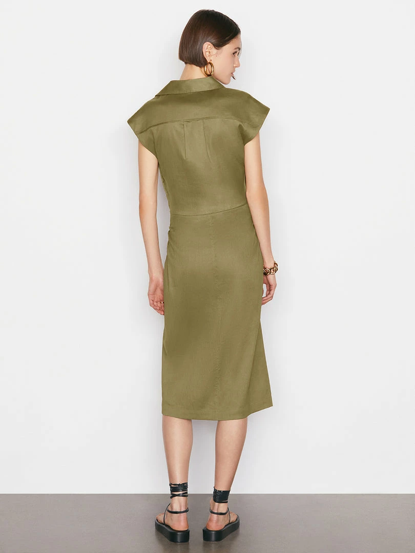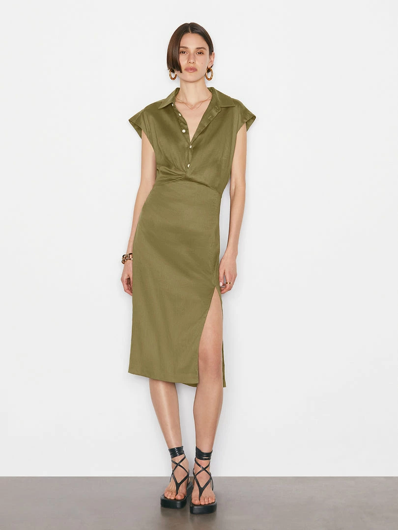 This surplus linen-blend shirtdress elevates a summer classic by adding an alluring twist: The button-down placket finishes with a twist detail that accentuates the waist and balances the side slit. This dress features a lined skirt and a side zip for ease.