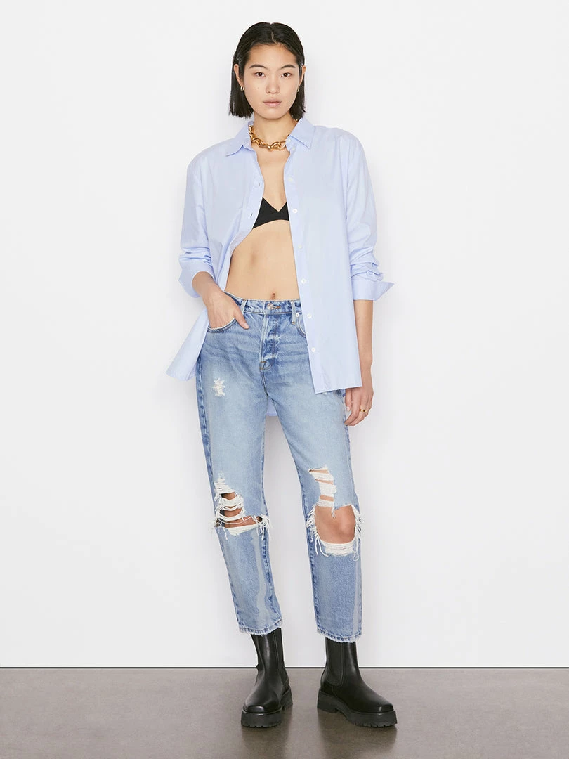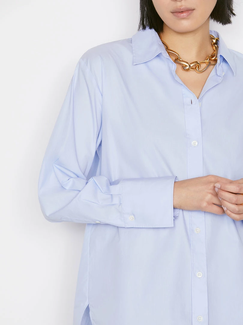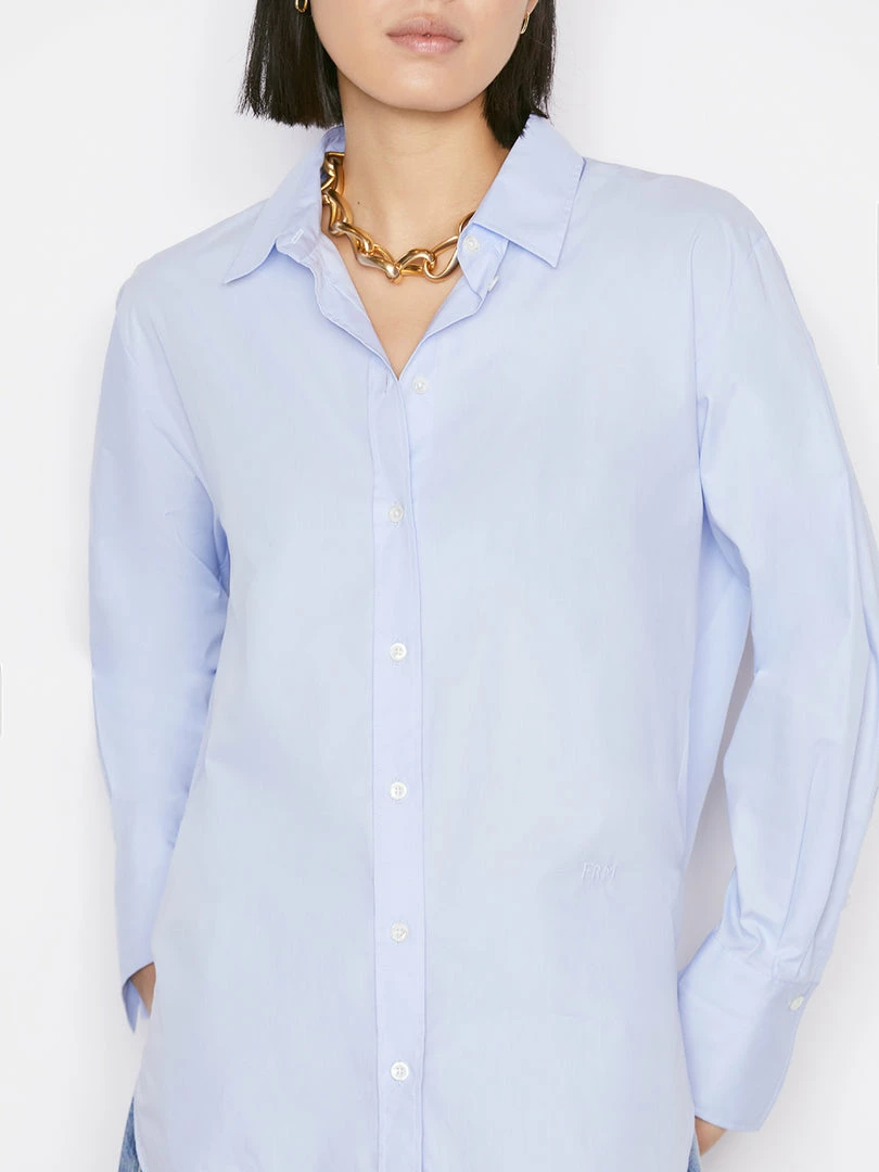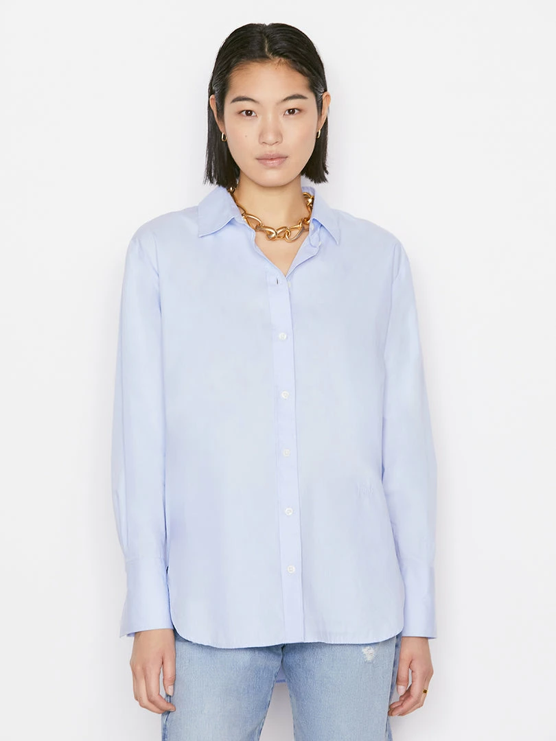 A FRAME classic revisited in classic Oxford shirting, this button-down is smart yet relaxed, and crafted from ultra-soft organic cotton. The oversize fit appears effortlessly polished, whether worn with slouchy jeans, leather bottoms, or utility trousers.