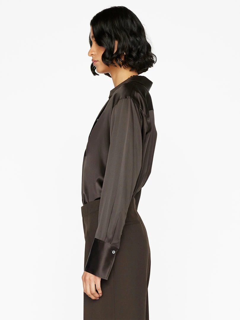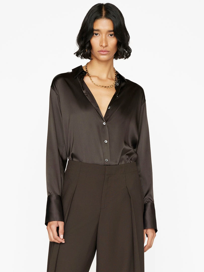 With a straight fit that’s slim enough to tuck with a modern, slightly boxy silhouette, this supple silk charmeuse top is an office uniform essential. Style it under blazers and leather jackets, over a bralette with a few extra buttons undone, and solo with denim and trousers.