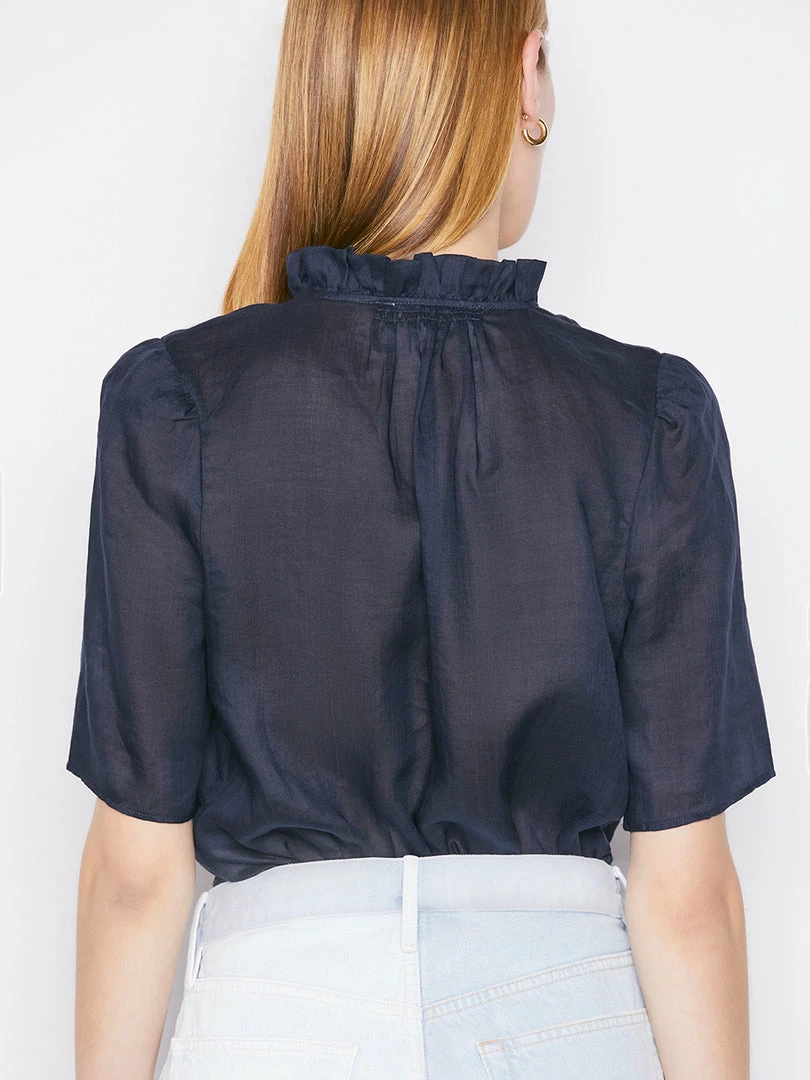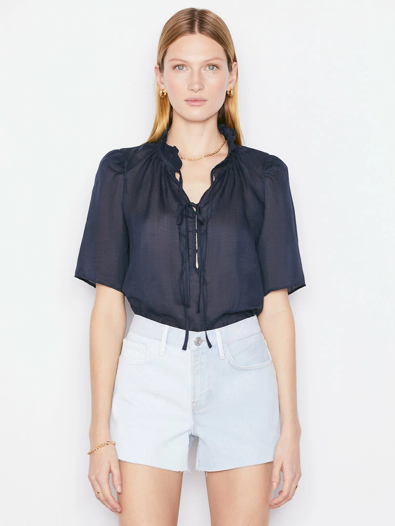 Buy 🥰 Frame-denim Tie-Neck Ruffle Popover — Navy 😉