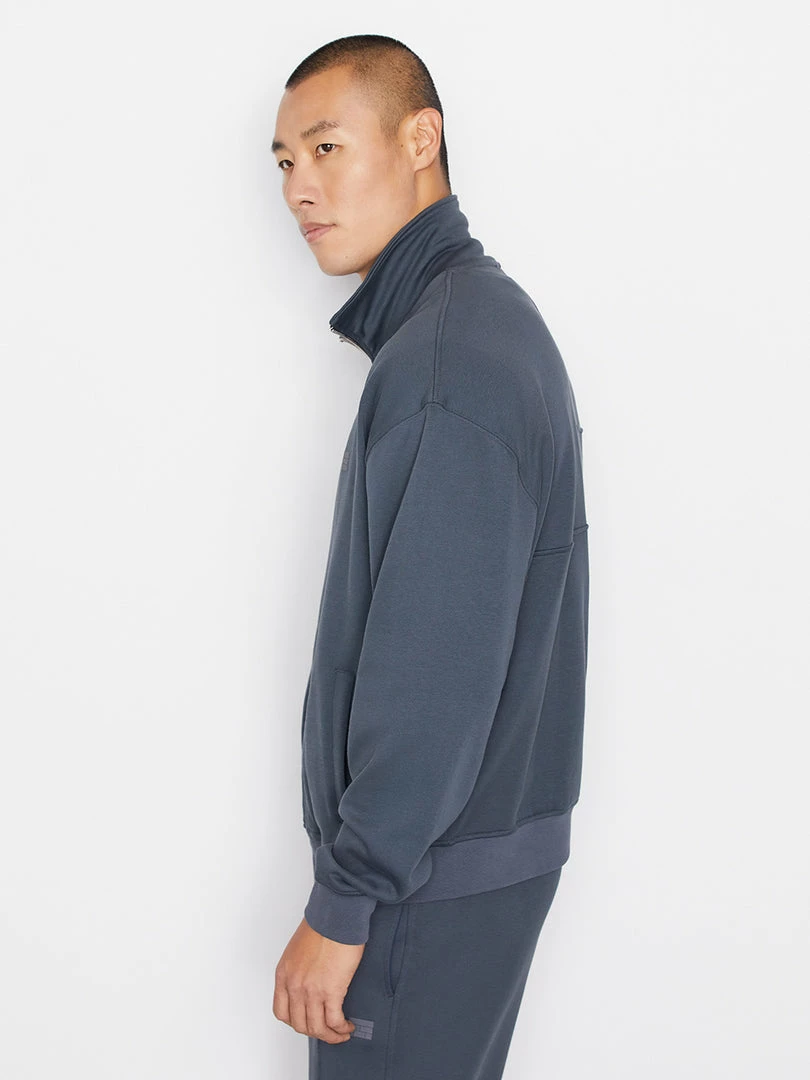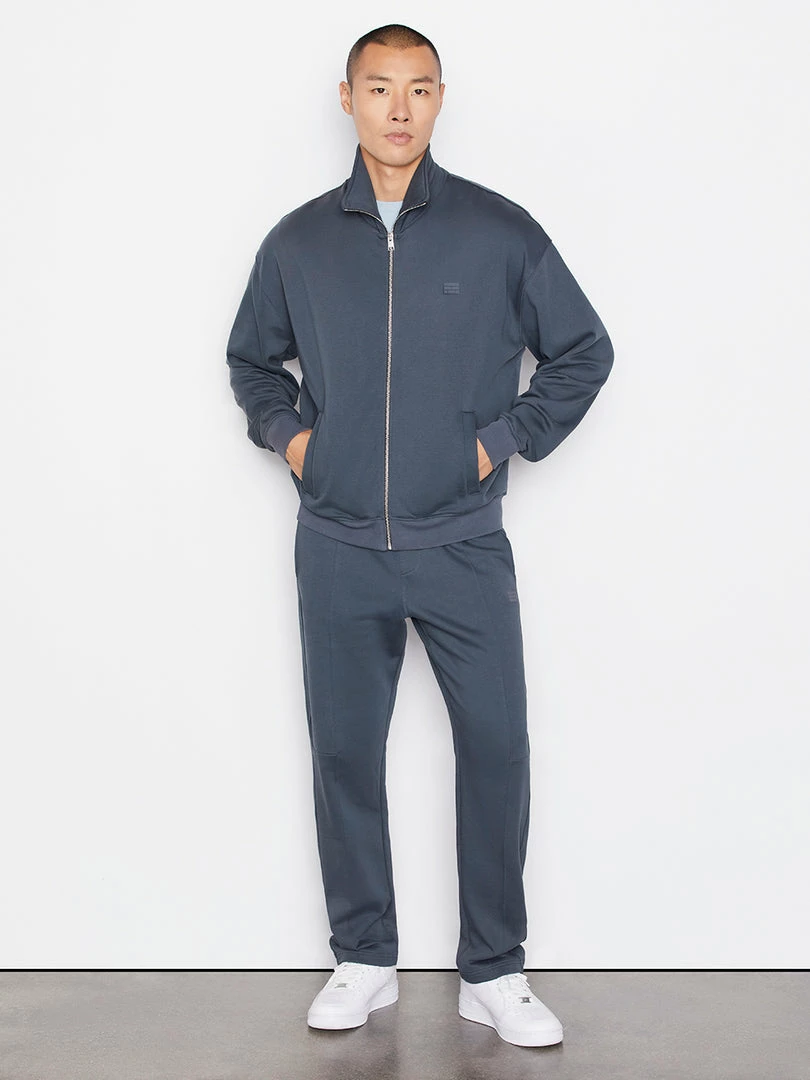 Our elevated take on the classic track uniform, this full-zip jacket is made with interlock fabric for a luxurious look. Featuring ribbed cuffs and bottom hem, and the FRAME Empathetic Aesthetic logo ethos on the sleeve, this piece is an elevated option for sport, leisure, and laid-back looks.