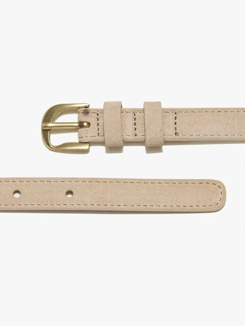 This 100% leather belt is a luxurious accent on high-waisted denim and trousers, but we also love the balance it brings styled with a slouchy boyfriend jean.