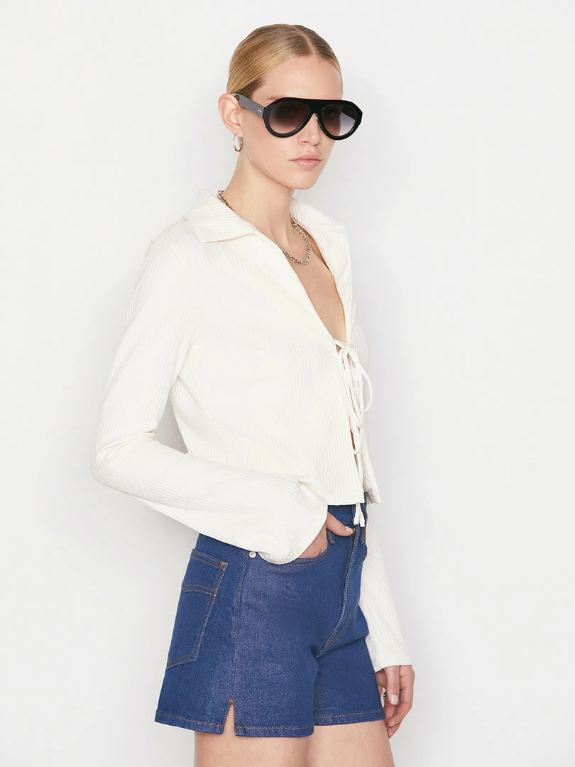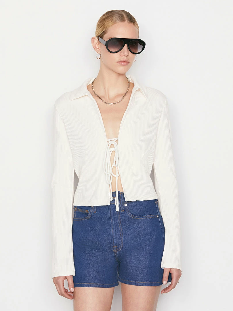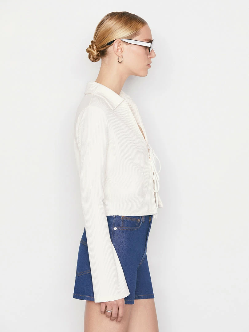 Wholesale โญ Frame-denim ๐ฉ Women Bell Sleeve Rib Polo — Bone ๐คฉ
