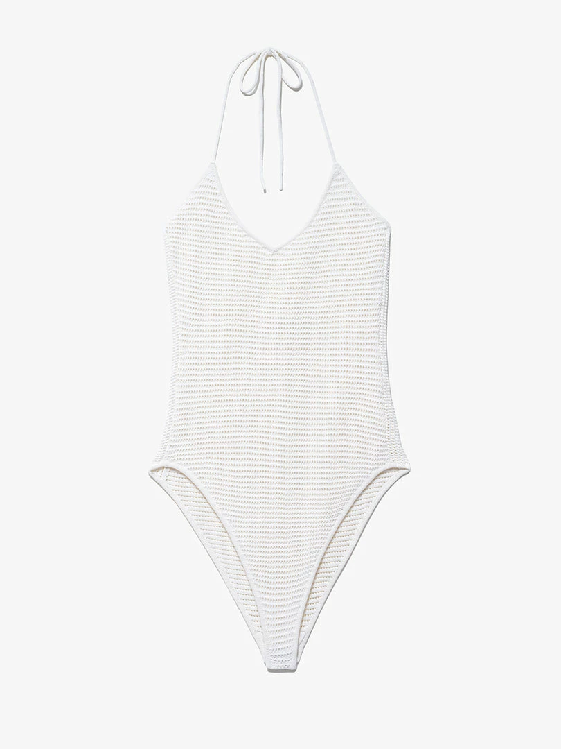 Promo ๐งจ Frame-denim ๐ฉ Women Crochet Halter Bodysuit — Off White ๐