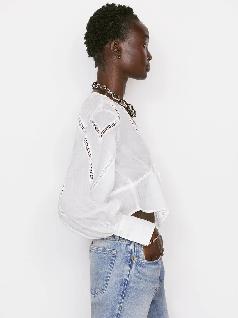 Discount ๐คฉ Frame-denim ๐ฉ Women Inset Lace Empire Blouse — Blanc ๐