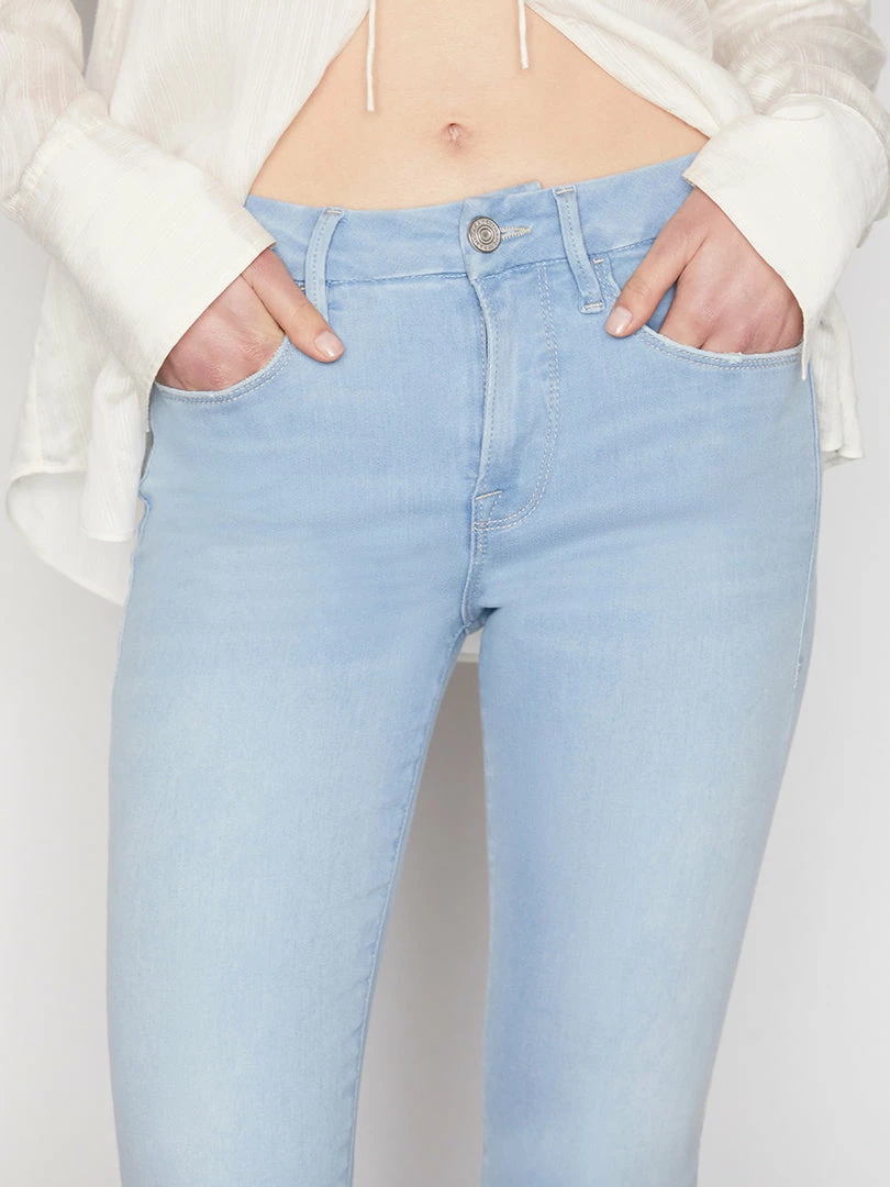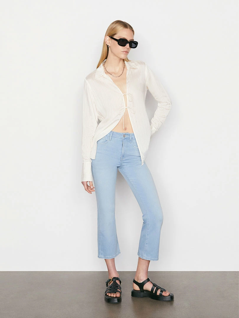 A cropped bootcut jean in a modern bright-blue wash. Designed with a comfortable contour waistband that’s form-fitting at the top and tapers out from the knee into a slight kick. Crafted from our revolutionary Le Shape stretch denim for a sleek, feminine look that holds your shape all day and night.