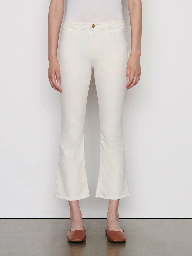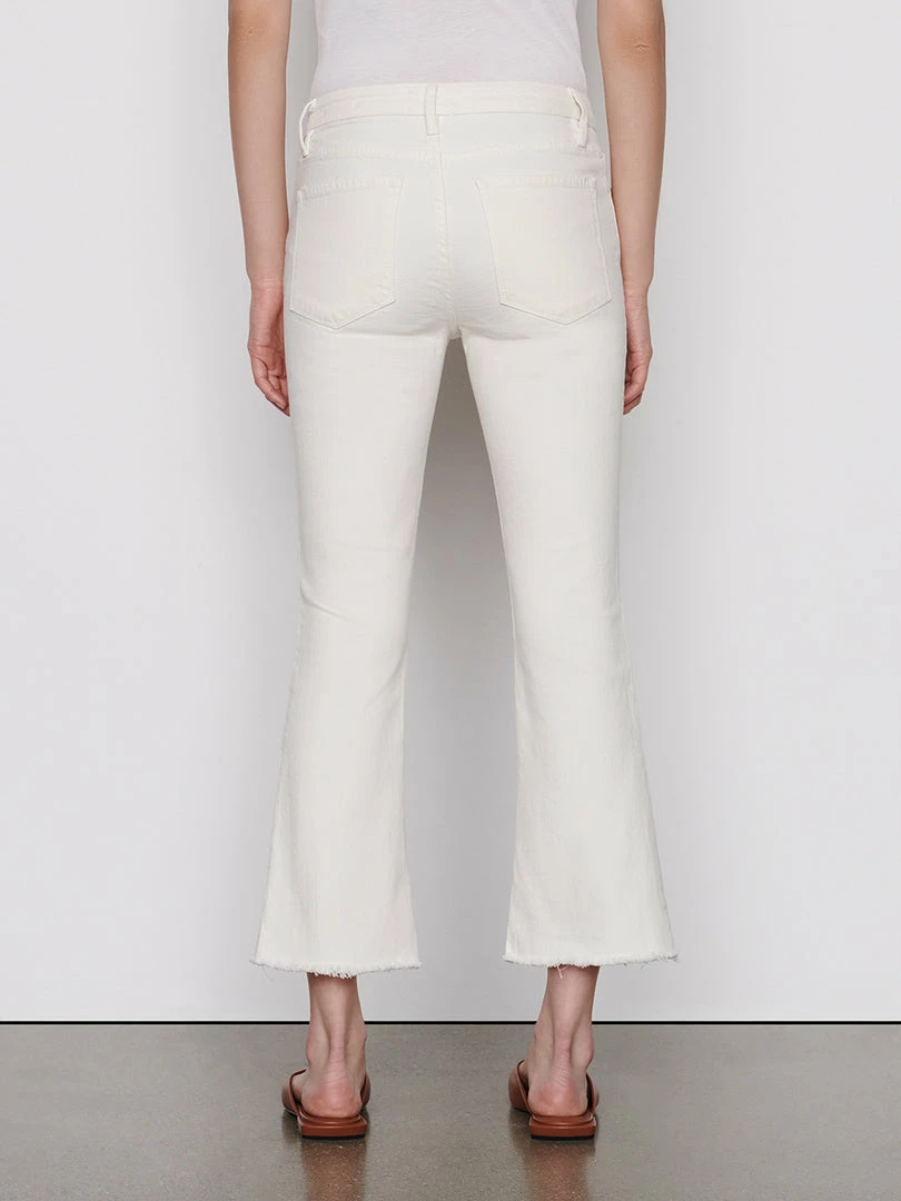 A FRAME best-selling fit, this cropped boot-cut jean is part of our Au Natural collection celebrating fabric in its purest form. The denim is made from undyed and unbleached recycled and upcycled cotton, reducing the dyeing process’s impact by eliminating toxic chemicals and reducing energy and water use. The silhouette features a comfortable contour waistband that’s form-fitting at the top and tapers out from the knee with frayed hems as the finishing touch for an undone feel.Β
