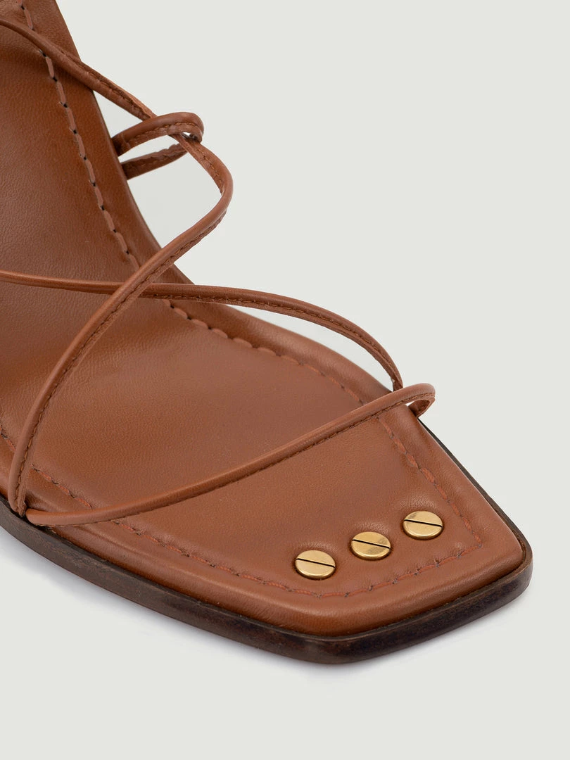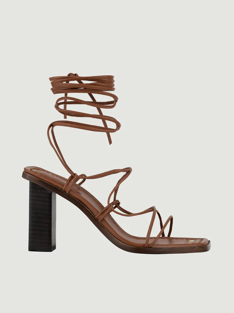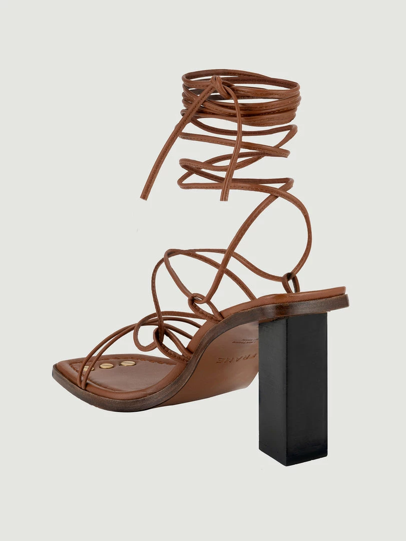 The ultimate barely-there sandal with a bohemian spirit, this lace-up silhouette features a stacked heel and squared toe with hand-screwed accents and contrast stitching. Crafted from supple Italian leather, dress it up or down any day of the week with denim, dresses, suiting, and beyond.