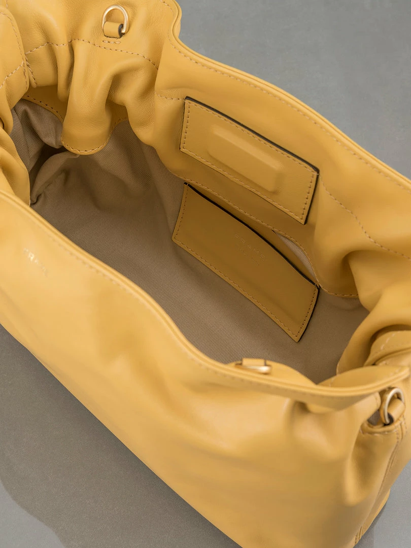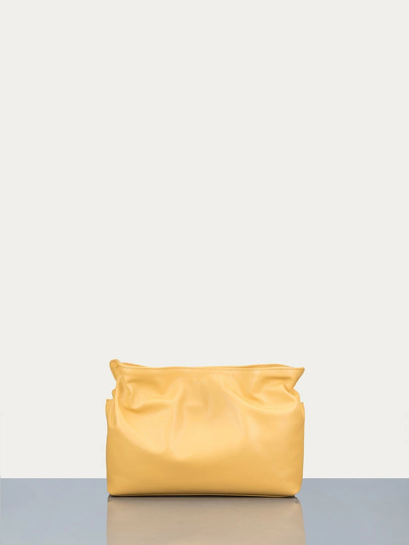 The newest silhouette to join the FRAME handbag collection, Le Doux makes an exquisite entreΓ© in 100% nappa leather. Featuring an organic shape with soft, shirred edges and a detachable strap, Le Doux can be styled as a clutch, crossbody, or shoulder bag. Finished with an interior pocket and the FRAME plaque in gold foil.