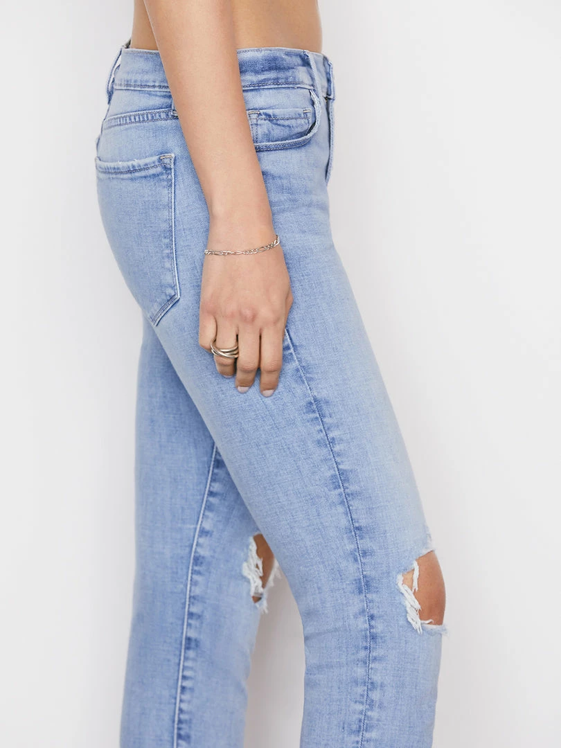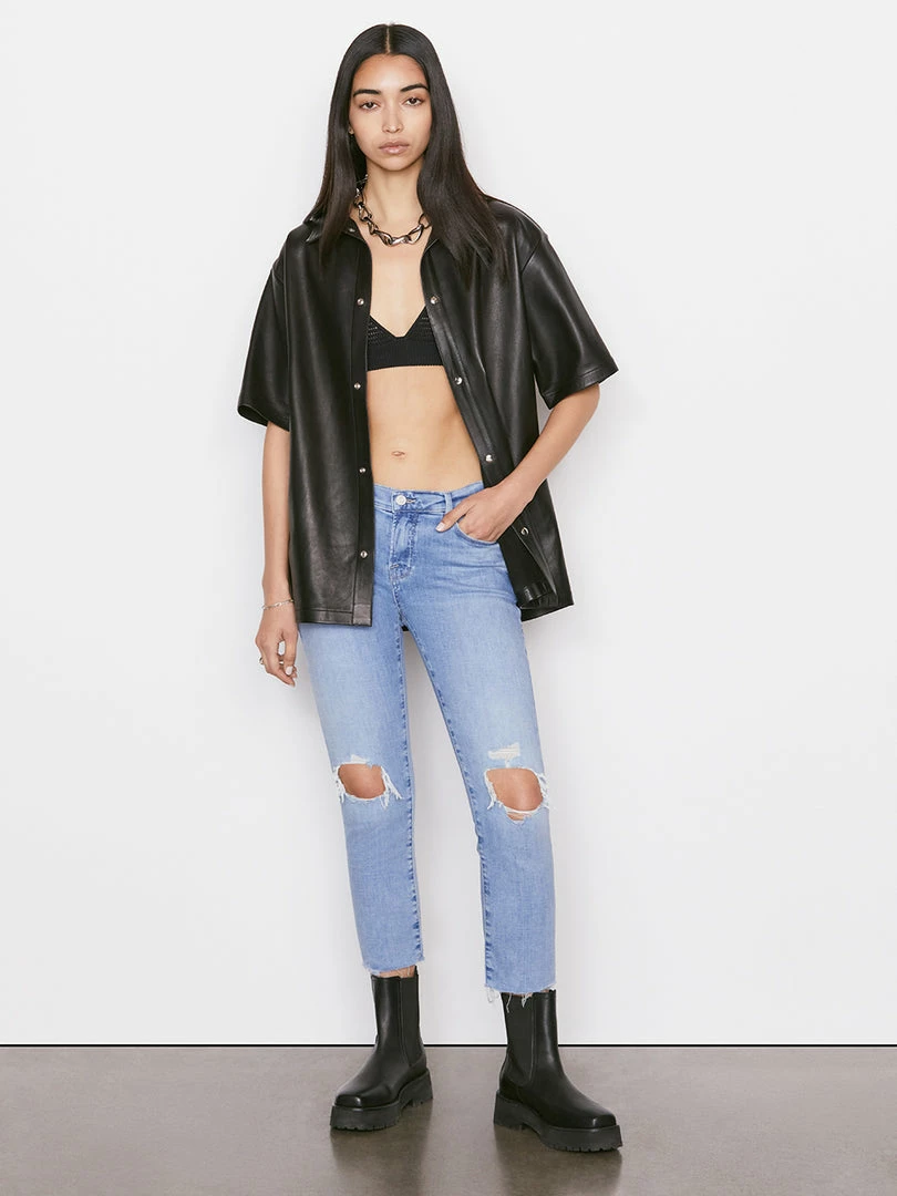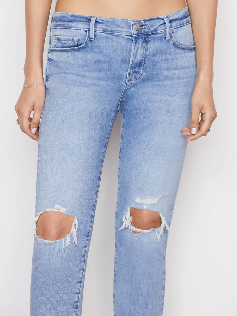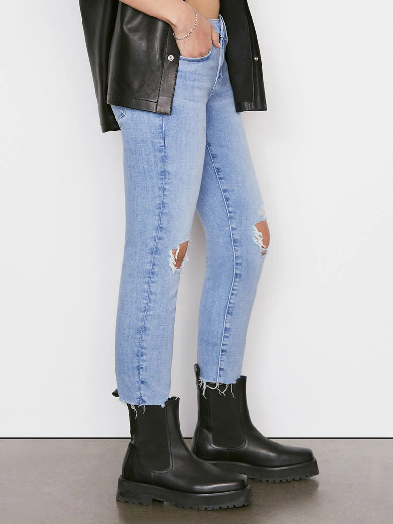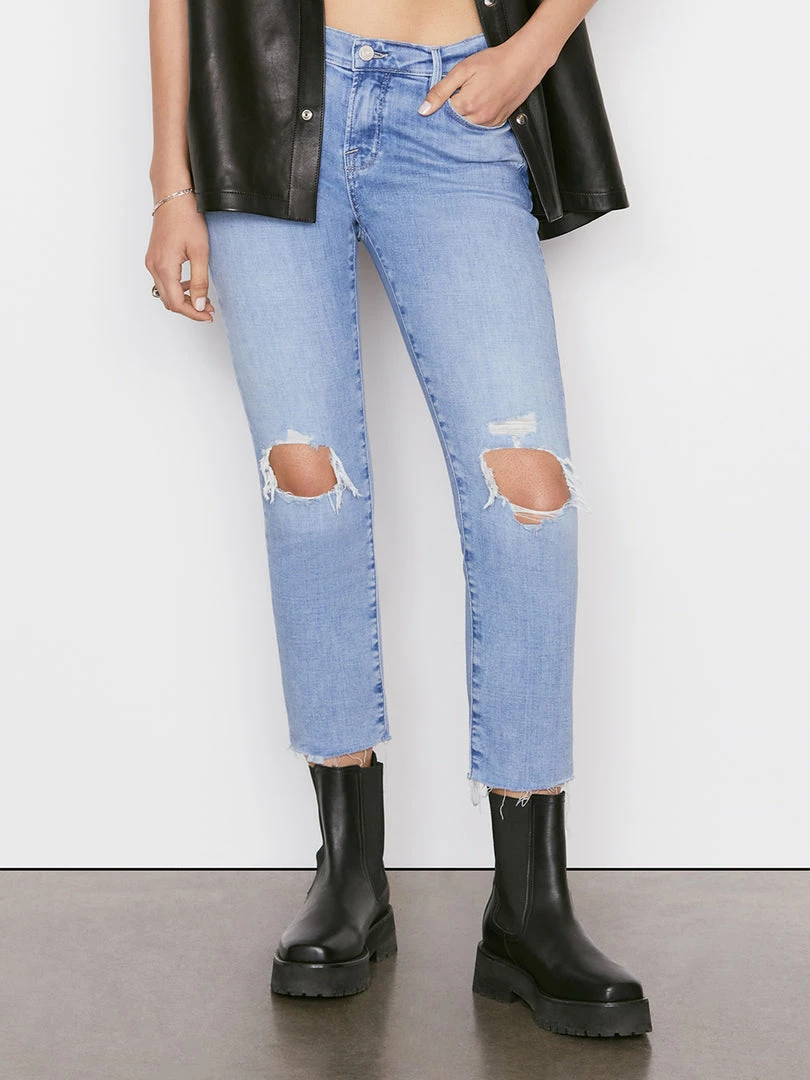 Our bestseller, back for summer in an on-trend light wash. Le Garcon Crop is a sophisticated boyfriend jean with a tailored straight-leg silhouette. Soft to the touch, with tattered knees and a raw hem, this cropped fit is designed to hit at the ankle.