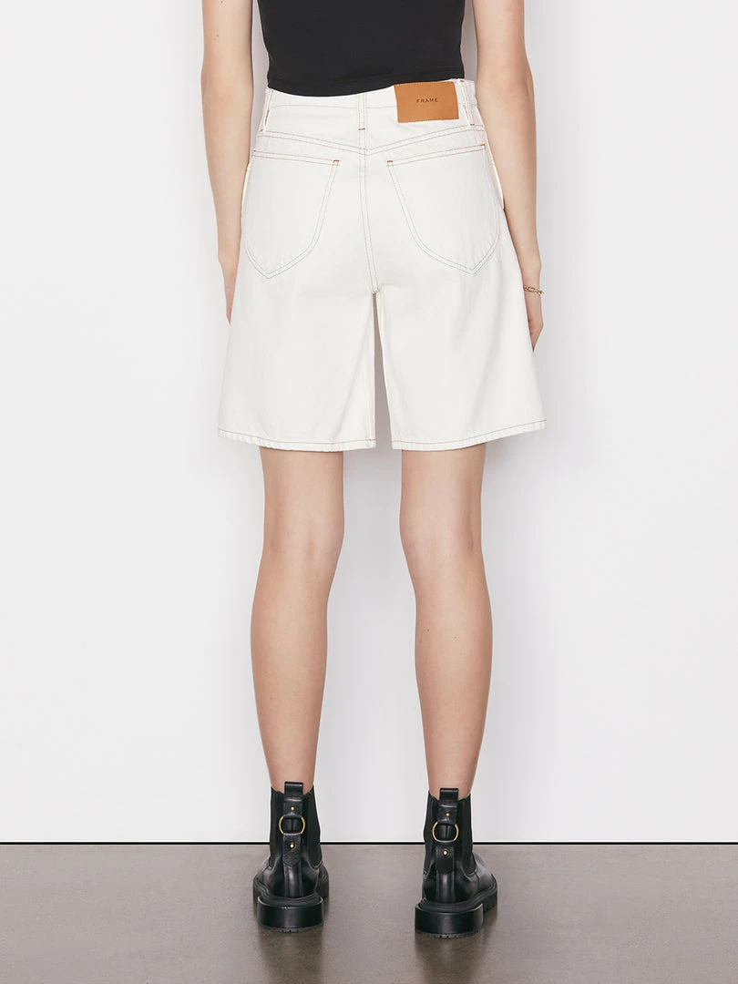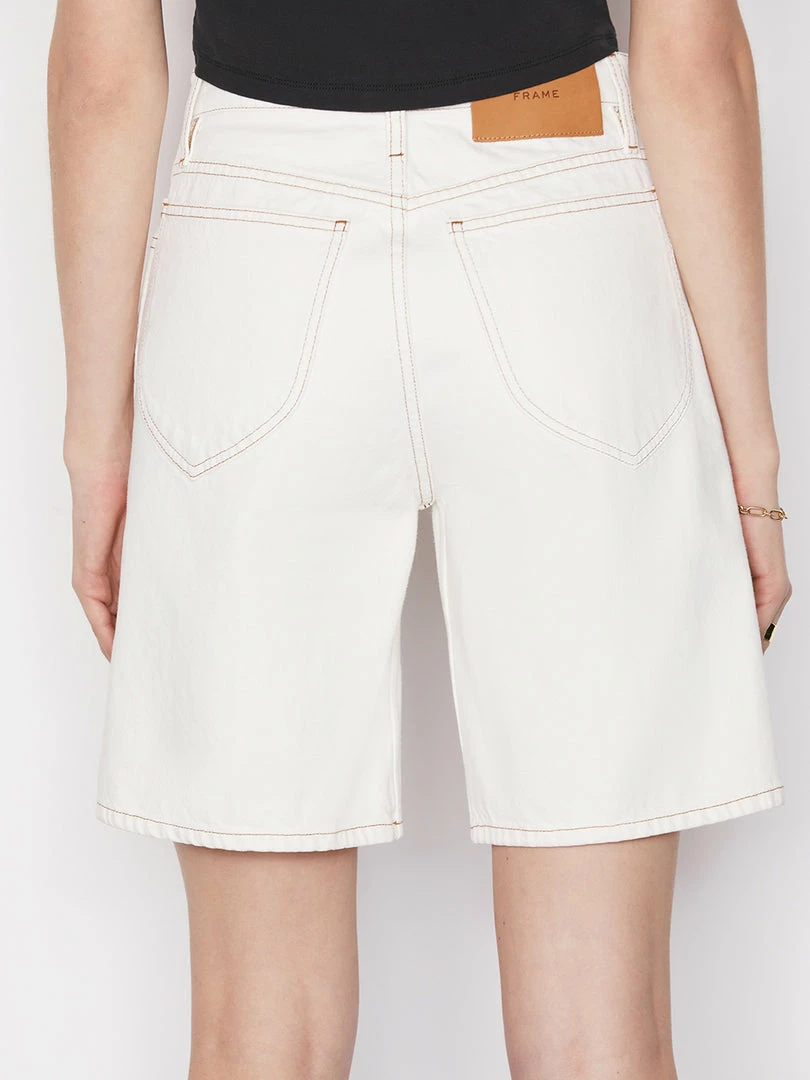 A summer-fresh Le Italien fit, this high-rise Bermuda short is made on a family-run nature preserve in Italy. Designed to hit just above the knee, this 100% cotton piece is made from biodegradable denim in Blanc, and features signature Le Italien gold hardware and trim.