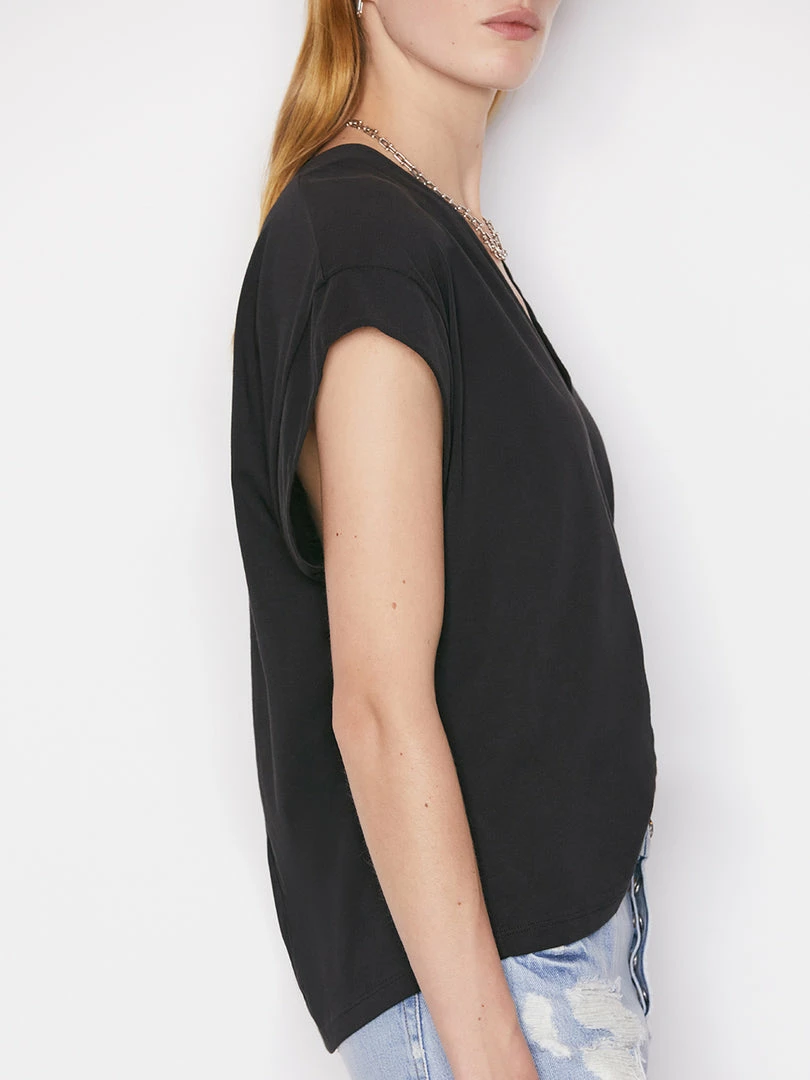 Discount π Frame-denim π© Women Le Mid Rise V Neck Tee — Noir π
