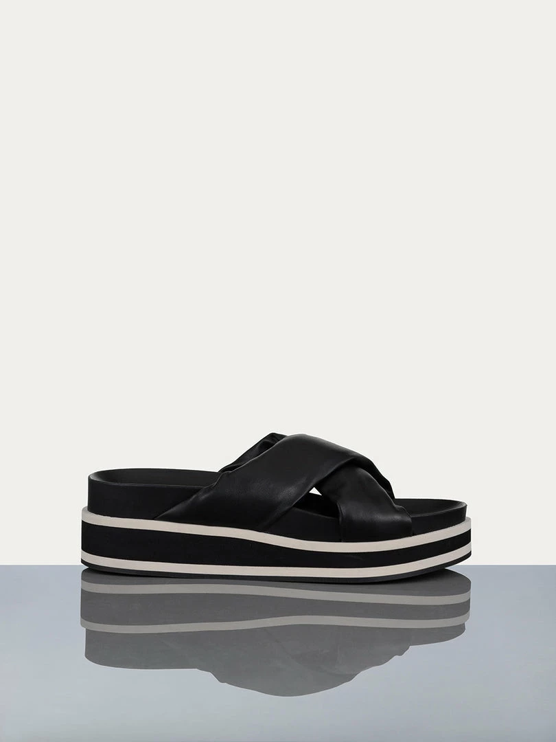 Featuring a Noir-and-white stacked platform sole that elevates laid-back looks and adds height without sacrificing comfort, these buttery leather slides work with breezy linen dresses and wide-leg denim alike. Pack this versatile pair for warm weather getaways, and style with cutoff shorts and tees for a nod-to-the-90s lift all summer long.