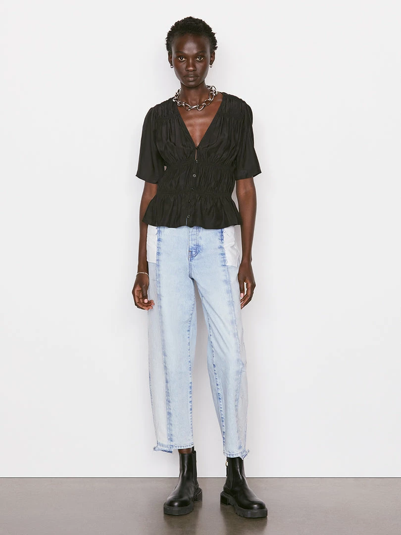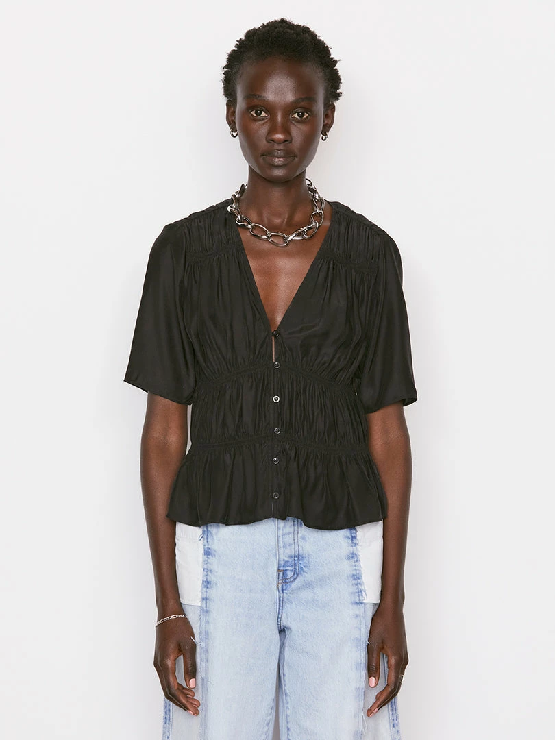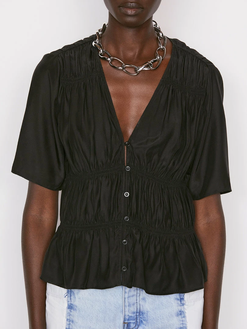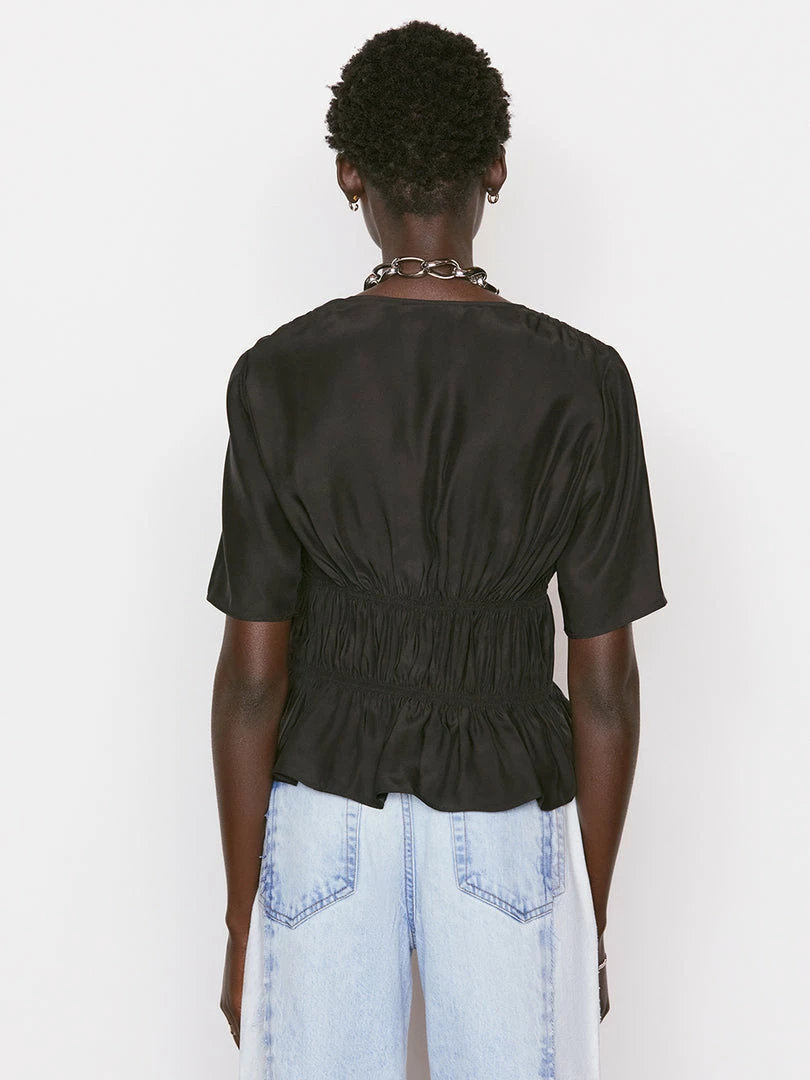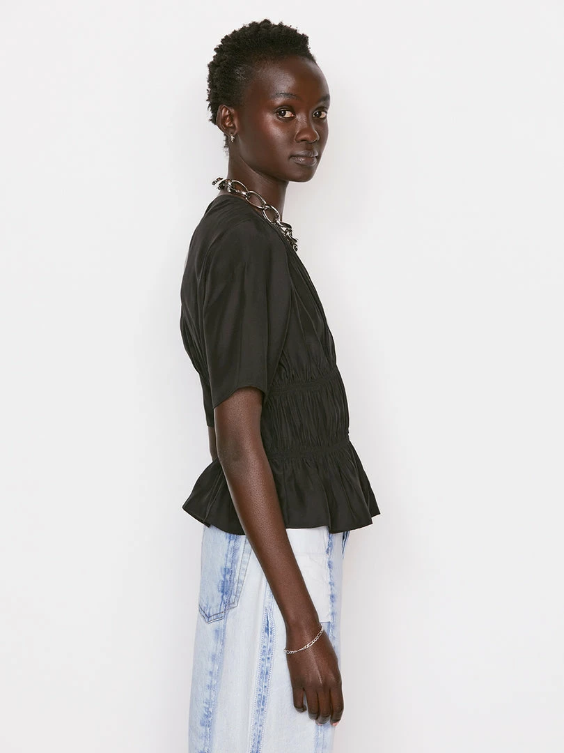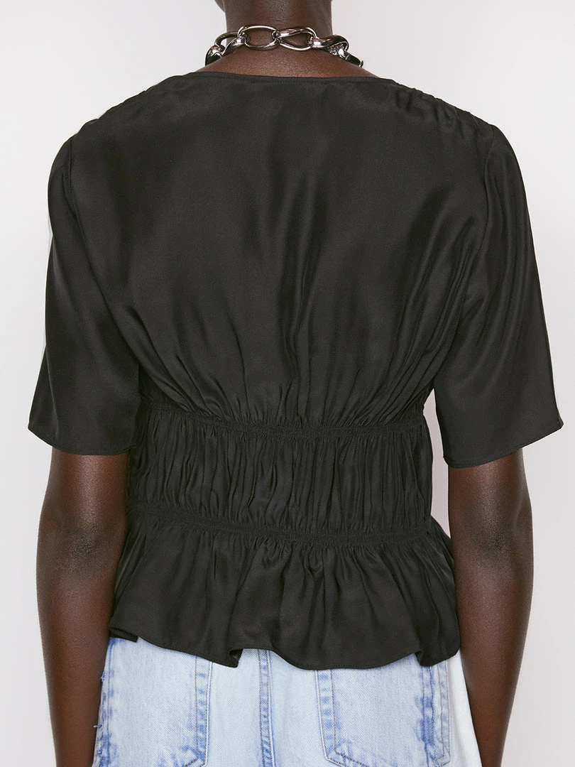 Brand new 🤩 Frame-denim 👩 Women Ruched V-Neck Short Sleeve Blouse — Noir 🌟