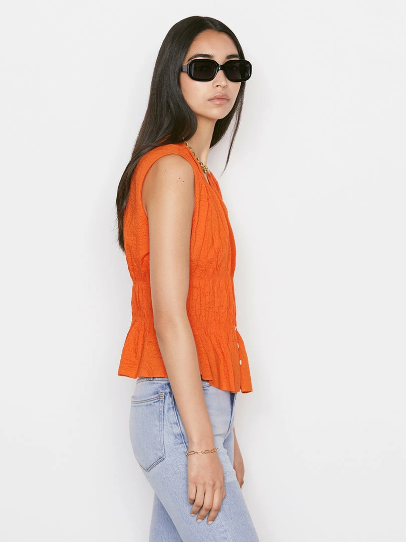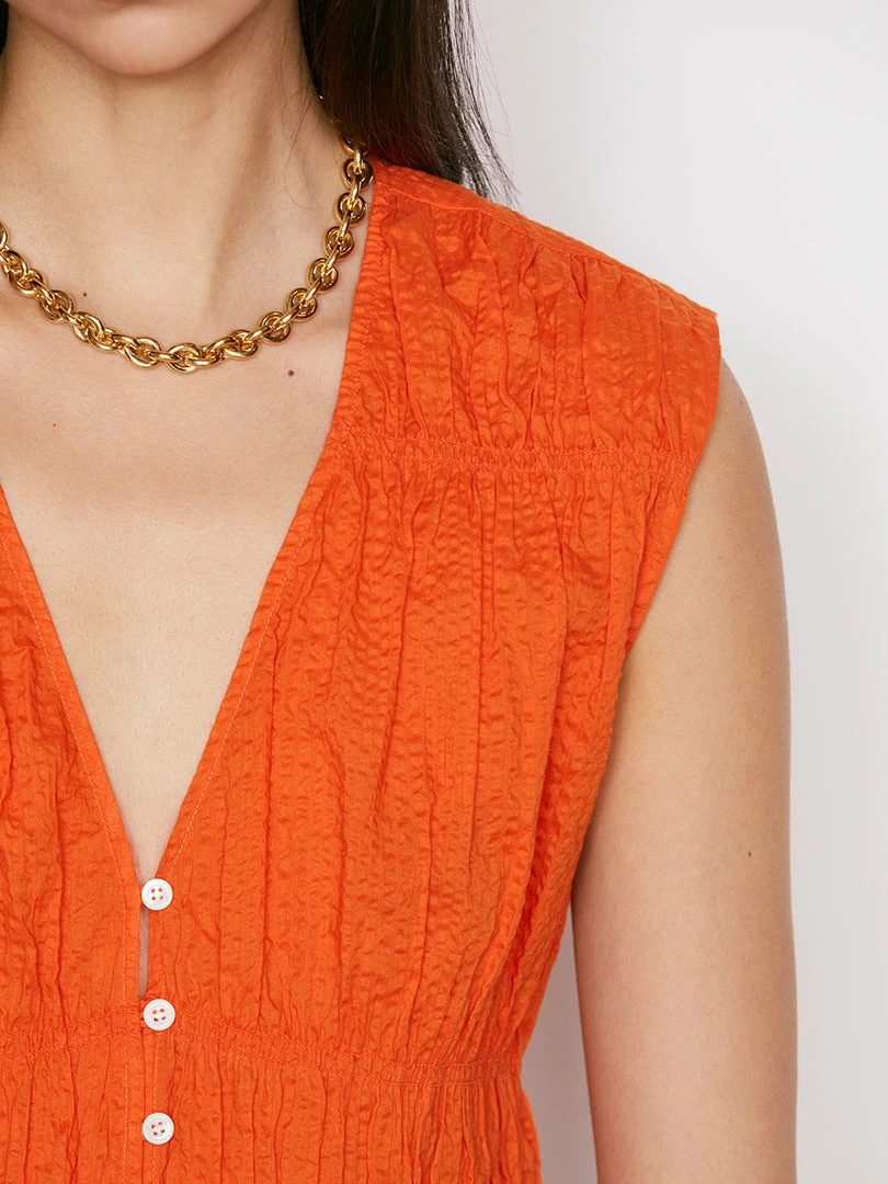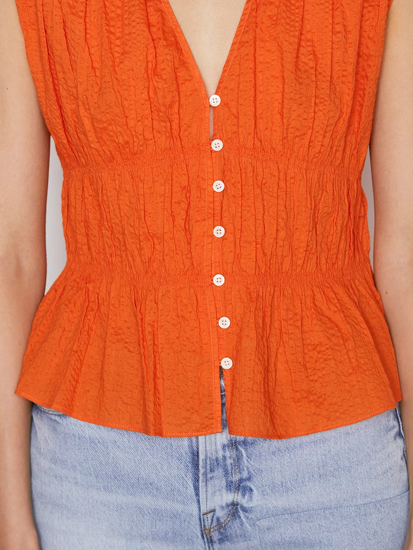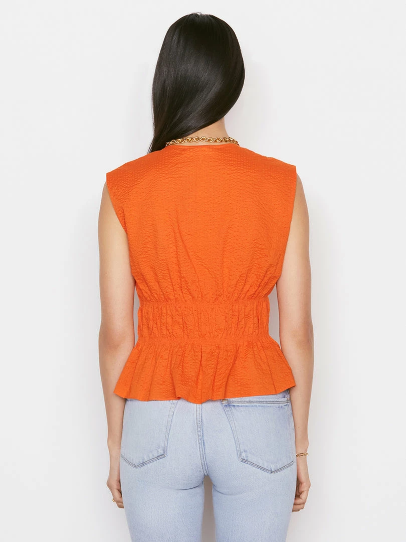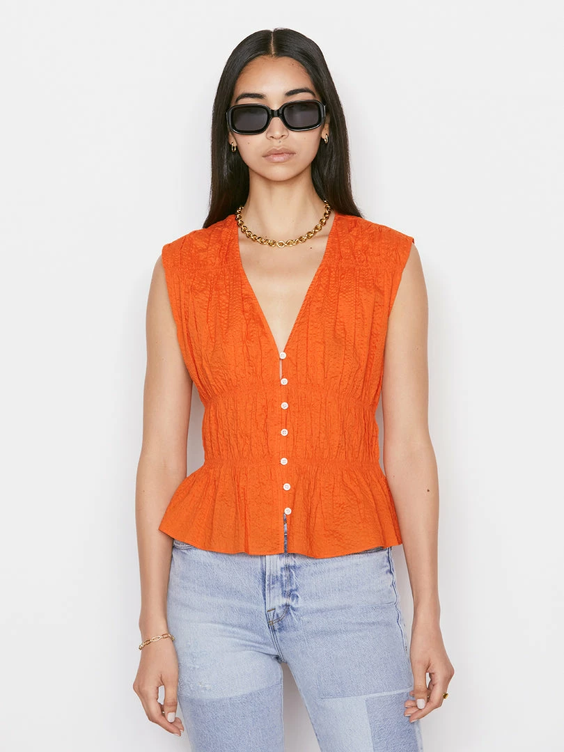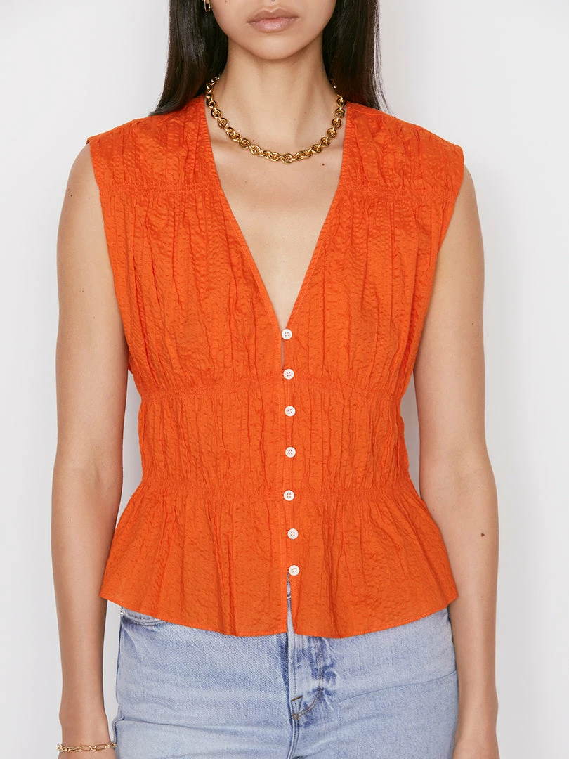 Top 10 โ Frame-denim ๐ฉ Women Ruched V-Neck Sleeveless Blouse — Orange Crush ๐ฅฐ